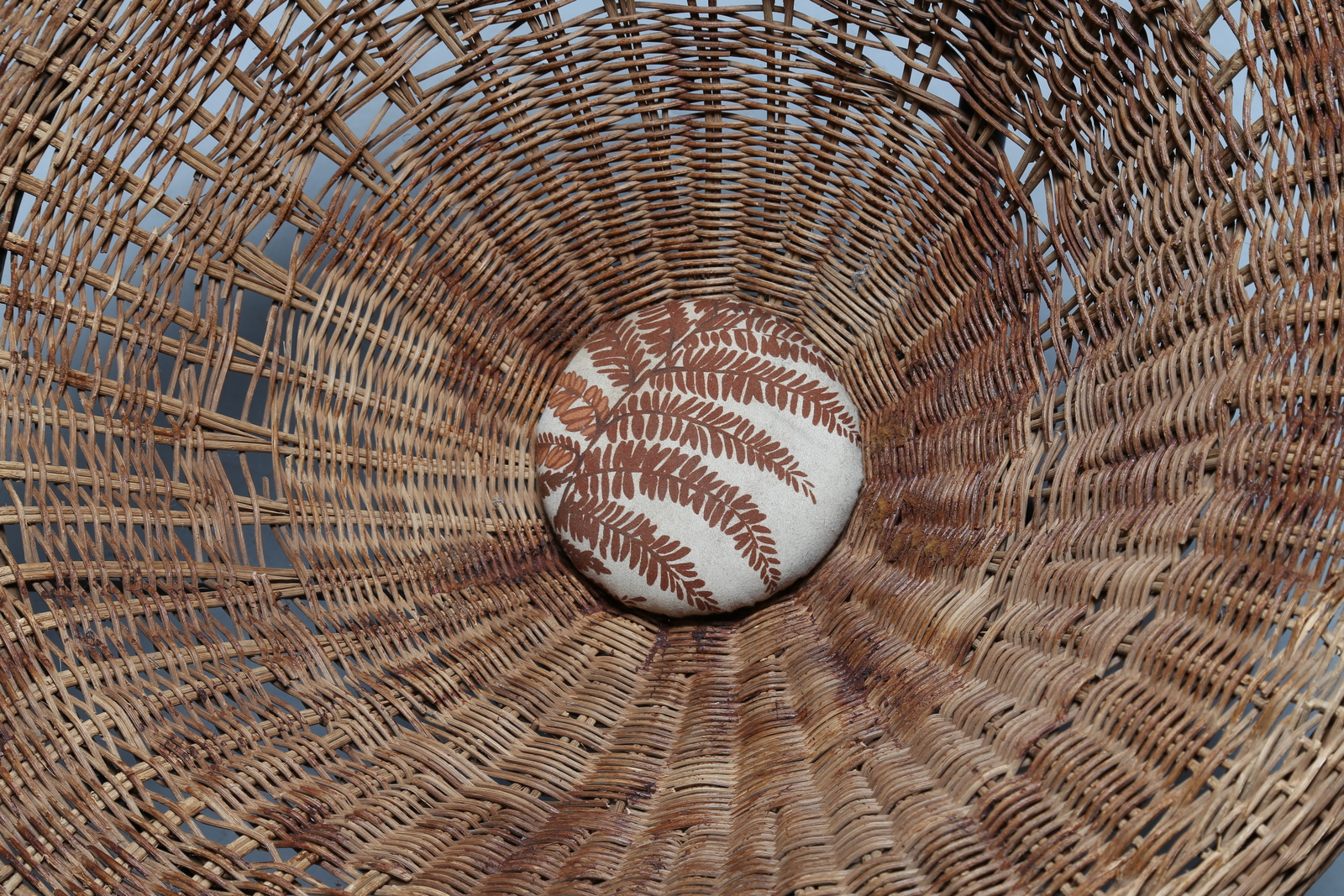 MANIFATTURA ITALIANA Poltroncina in tondino di ferro e rattan, mod. cesta,...