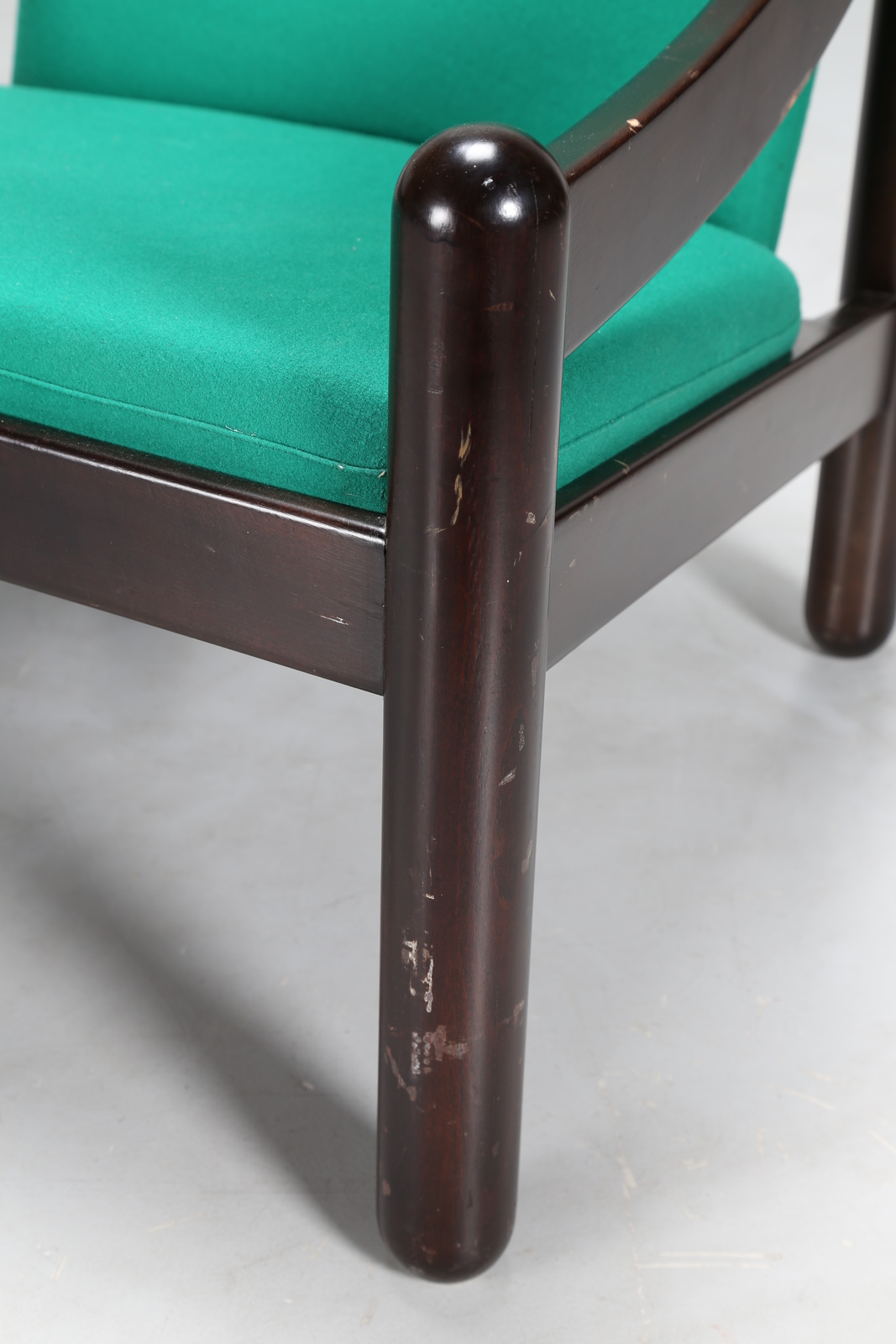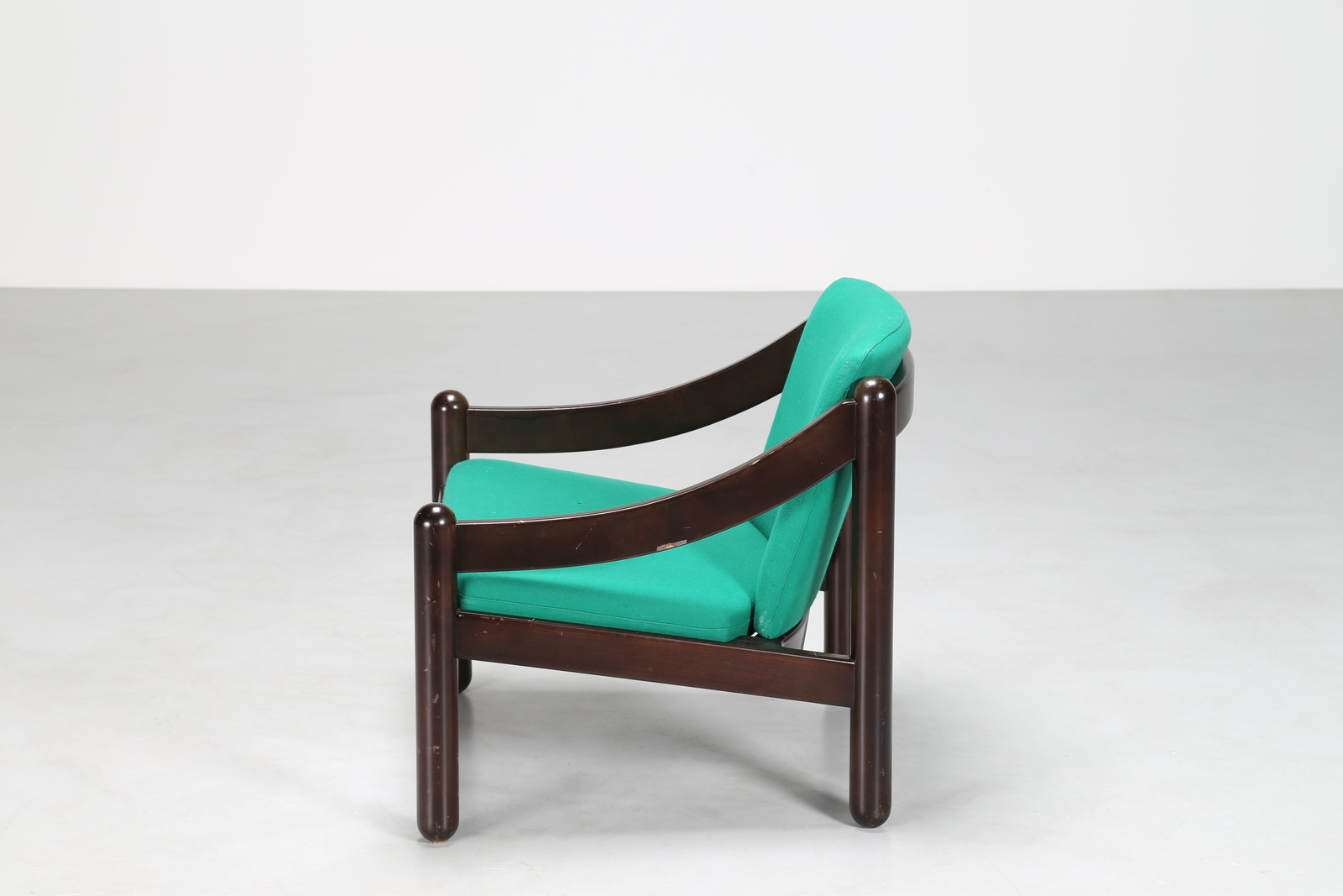 MAGISTRETTI VICO (1920 - 2006) Poltrone in legno laccato e tessuto, mod. 930 Carimate, per Cassina, anni 60. Pubblicazione. Catalogo Cassina 1967, pagine non numerate. Ottagono 30 (settembre 1973), p. 125 Pier Carlo Santini, Gli anni del design italiano Ritratto di Cesare Cassina, Electa, Milano, 1981, pp. 111, 114 Giampiero Bosoni, Made in Cassina, Skira, Milano, 2008, p. 204. -. Cm 71,00 x 69,00 x 72,00. Etichetta presente