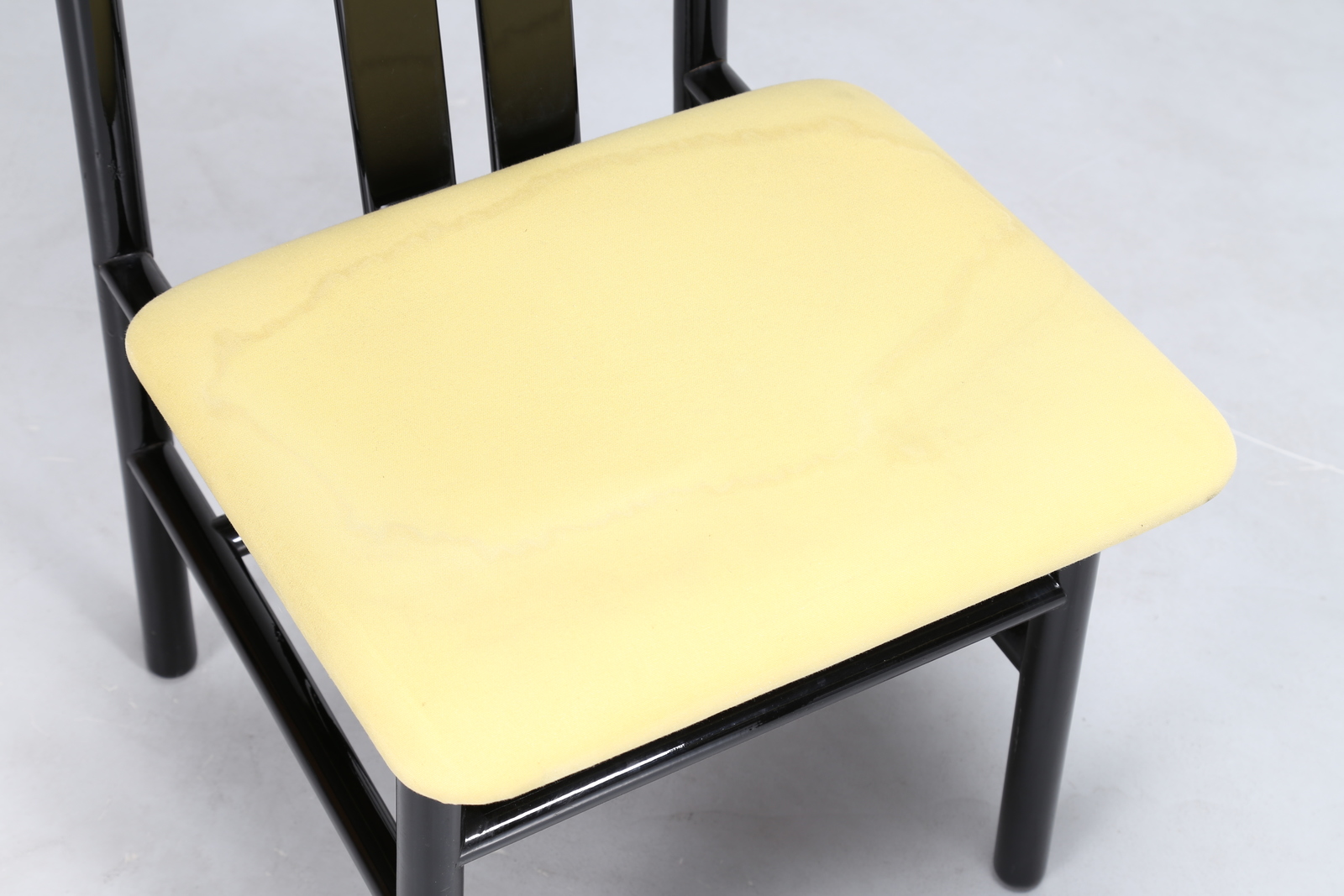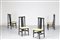 MANIFATTURA ITALIANA Quattro sedie in legno laccato nero e tessuto, anni 80 ....