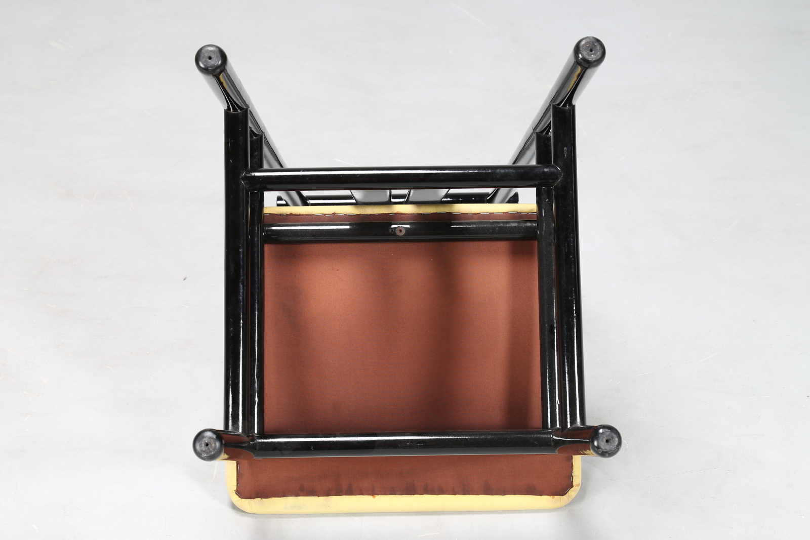 MANIFATTURA ITALIANA Quattro sedie in legno laccato nero e tessuto, anni 80 . -. Cm 46,00 x 103,00 x 50,00.