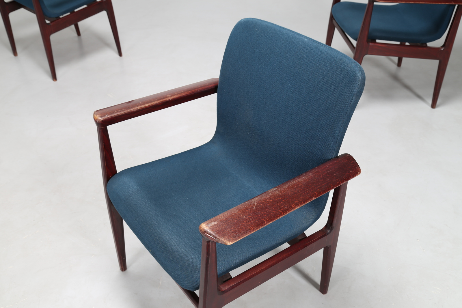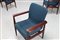 ANONIMA CASTELLI Tre poltroncine in legno e tessuto, anni 60. -. Cm 67,00 x 82,50 x 59,00. Etichetta presente