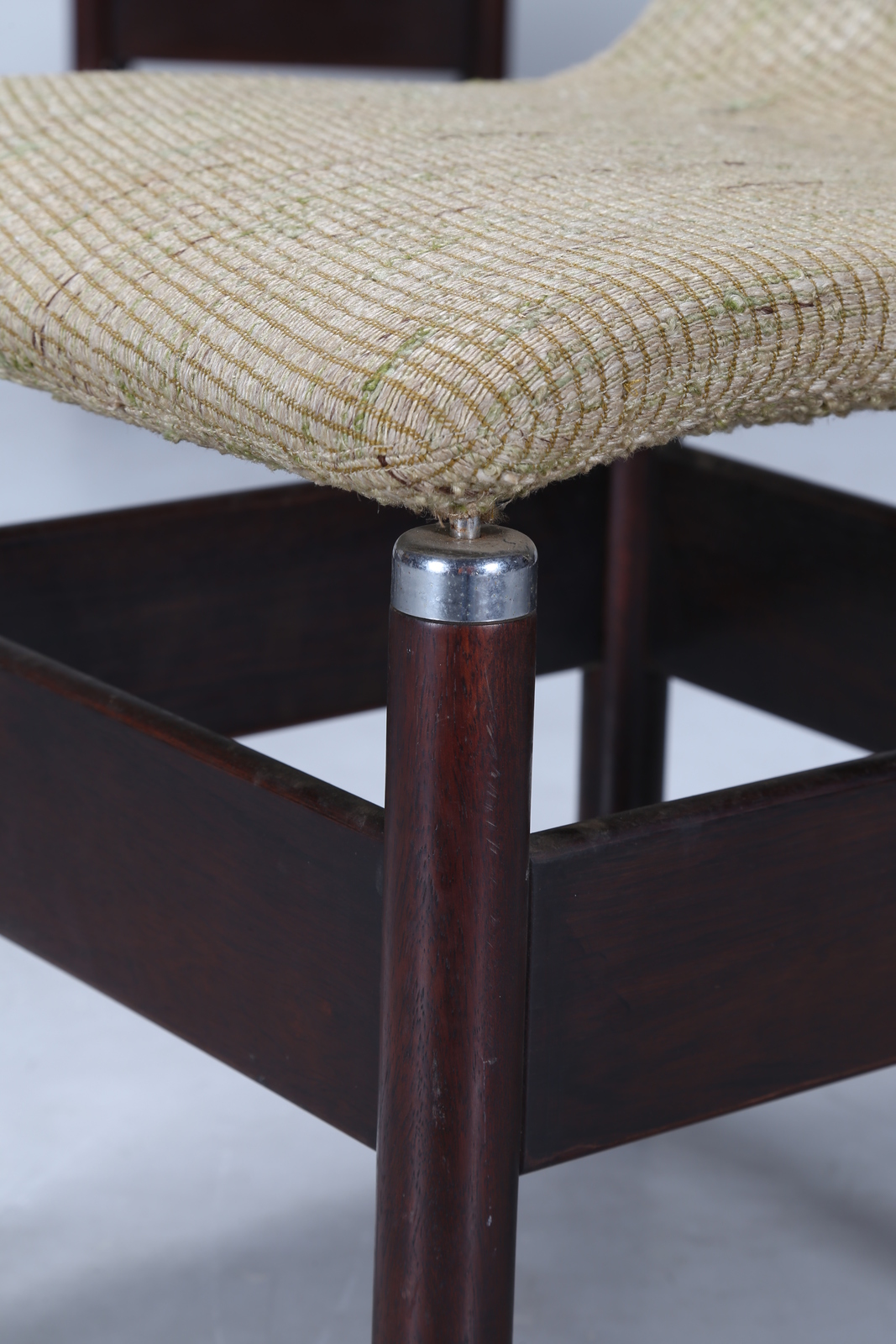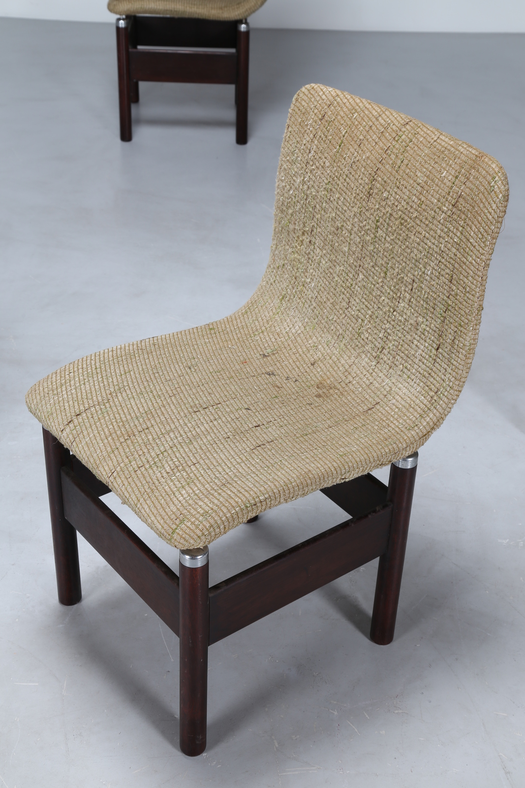 INTROINI VITTORIO Sei sedie in legno tinto all'anilina acciaio cromato e imbottitura rivestita in tessuto, mod. Chelsea, per Saporiti, anni 60 Pubblicazioni; Domus 440 (luglio 1966), p. 85; Casa Amica L'angolo del pranzo, 1968, p. 48 . -. Cm 45,00 x 82,00 x 55,00.