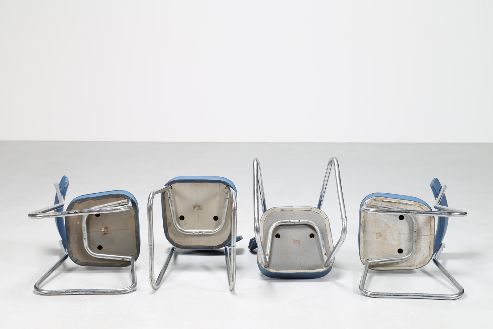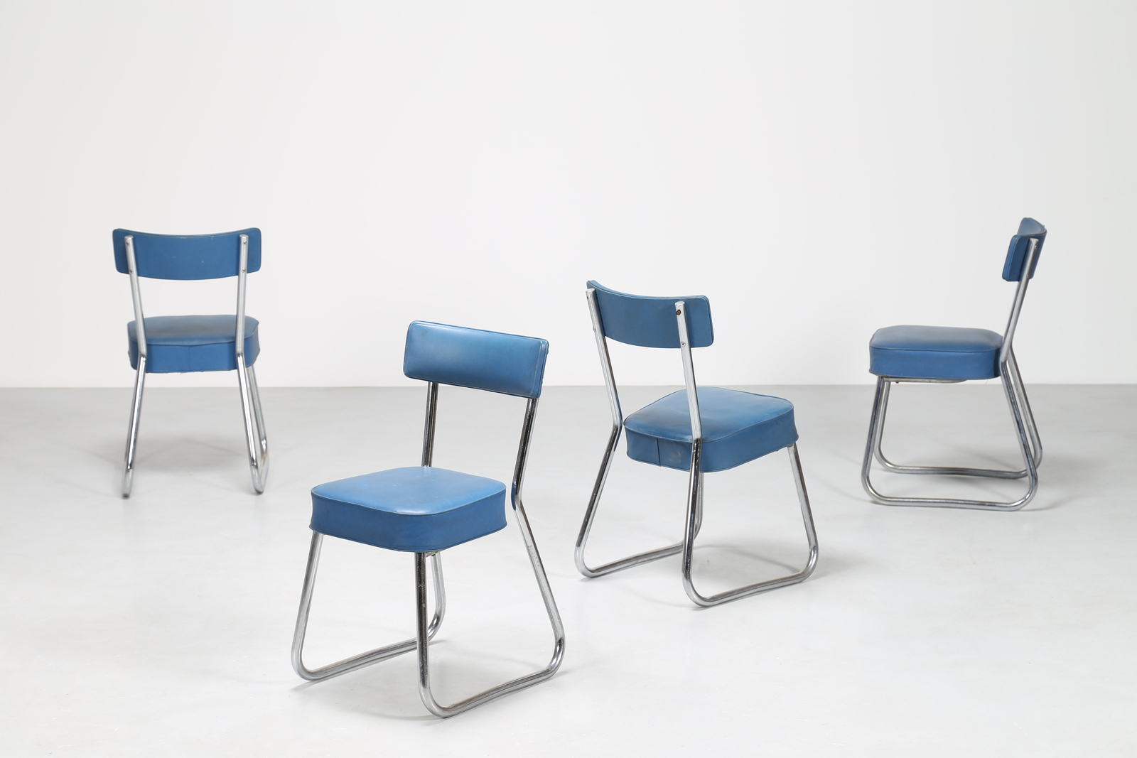 MANIFATTURA ITALIANA Quattro sedie in acciaio tubolare cromato e skai, anni...