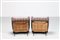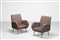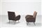 MANIFATTURA ITALIANA Coppia poltrone in tessuto e ottone laccato, anni 50. ....