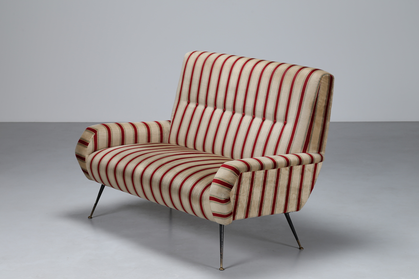 Lot 305 | MANIFATTURA ITALIANA Divanetto due posti con gambe ottone laccato e velluto a...