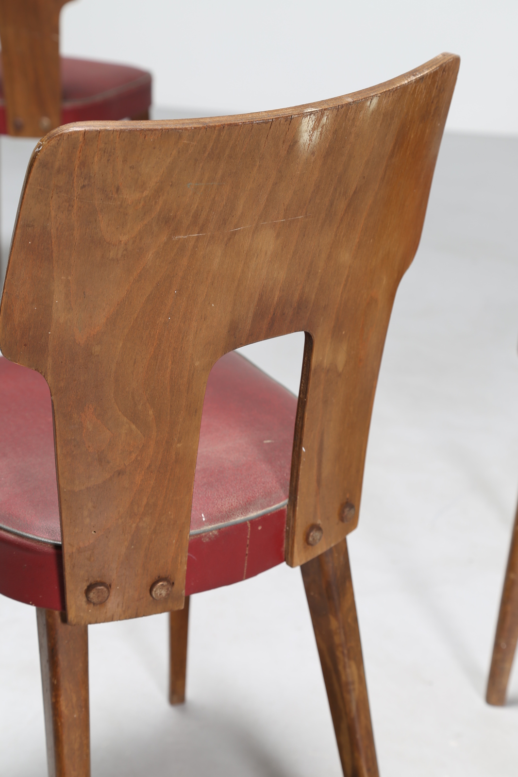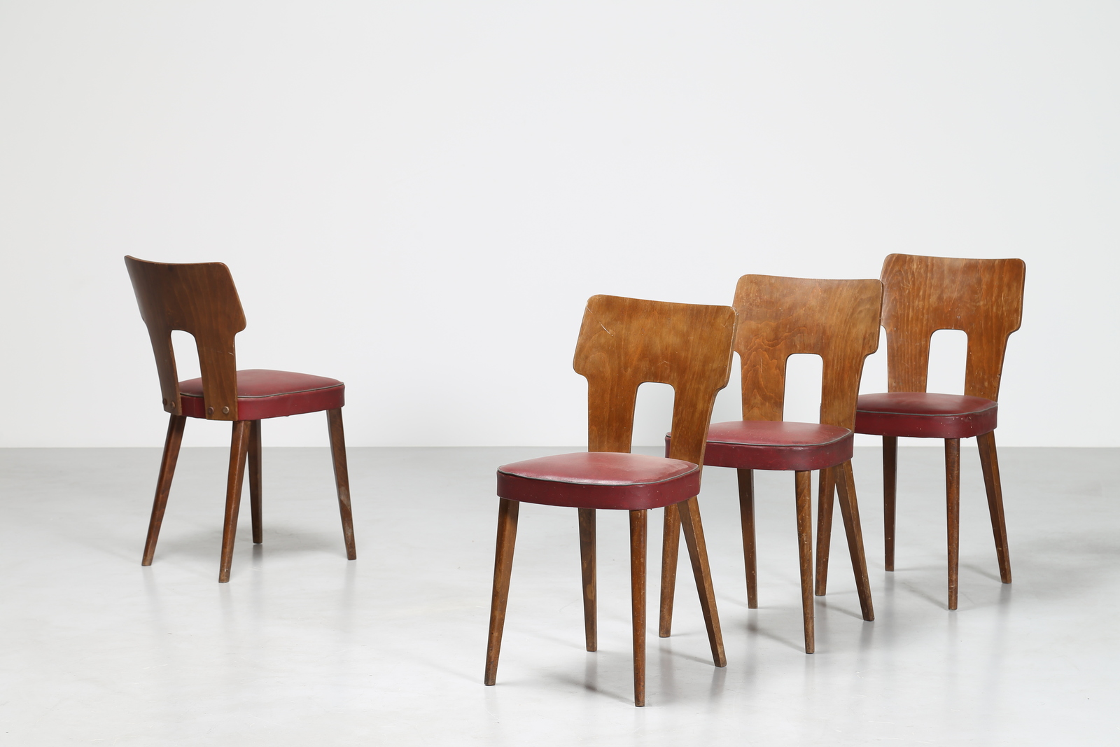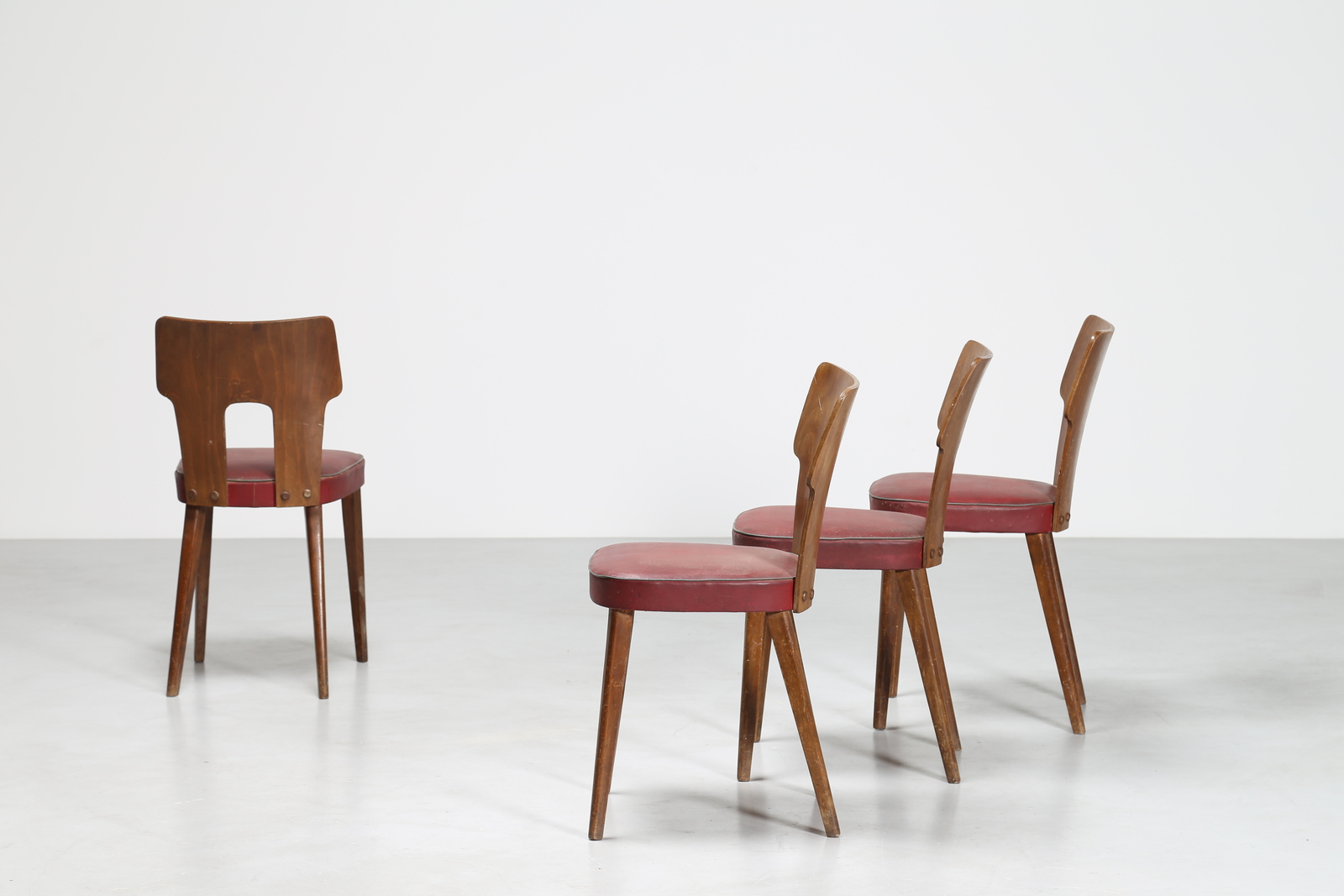 MANIFATTURA ITALIANA Quattro sedie in faggio curvato e skai, anni 50. -. Cm 39,00 x 79,00 x 48,00.