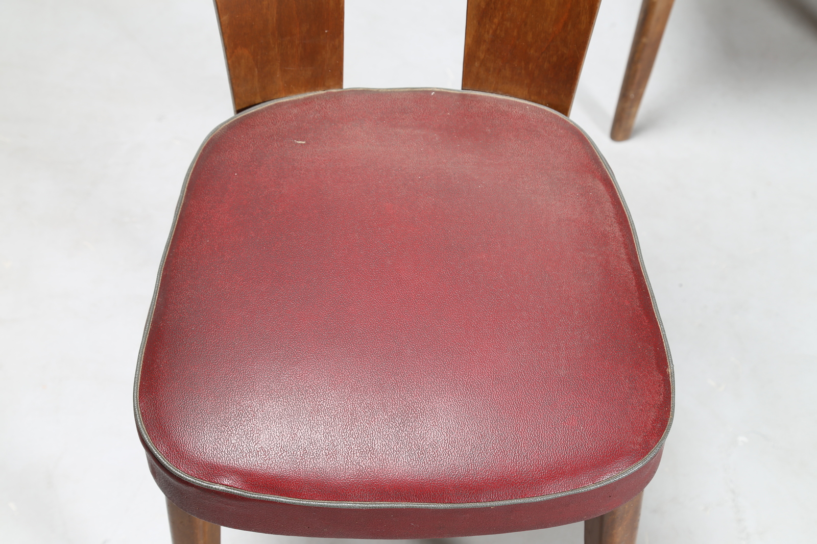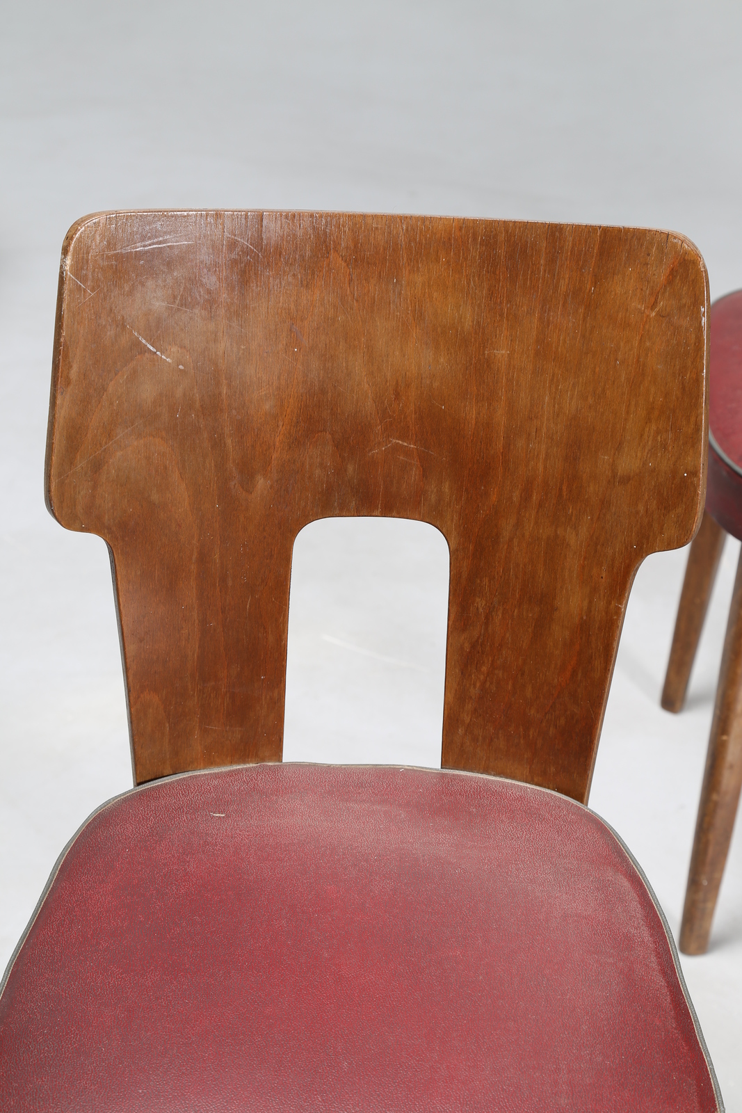 MANIFATTURA ITALIANA Quattro sedie in faggio curvato e skai, anni 50. -. Cm...