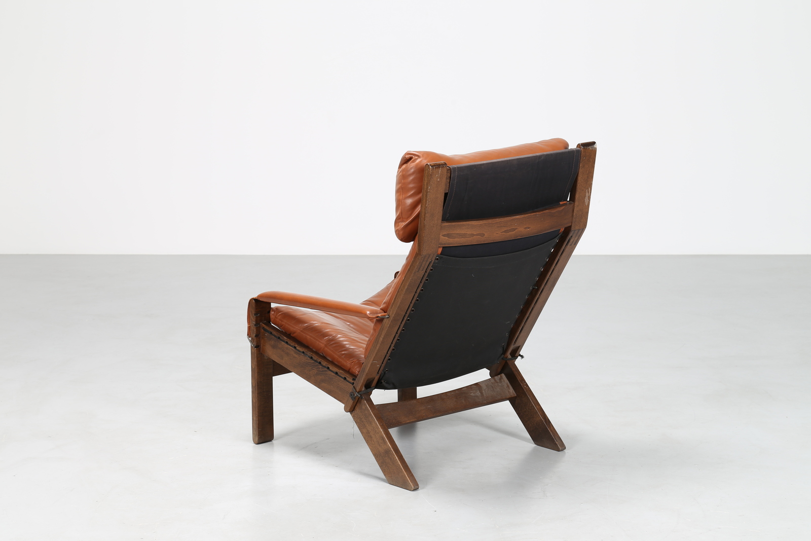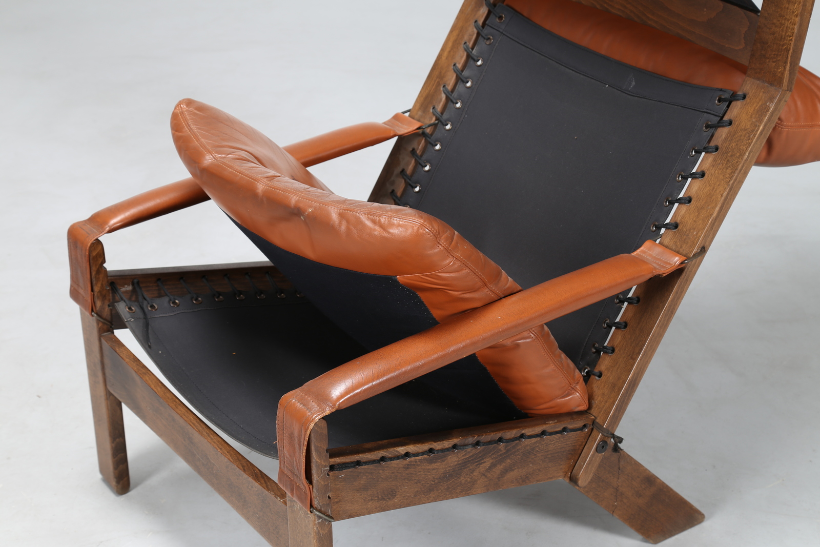 MANIFATTURA ITALIANA Poltrona relax in faggio e pelle, anni 60. -. Cm 67,00 x...
