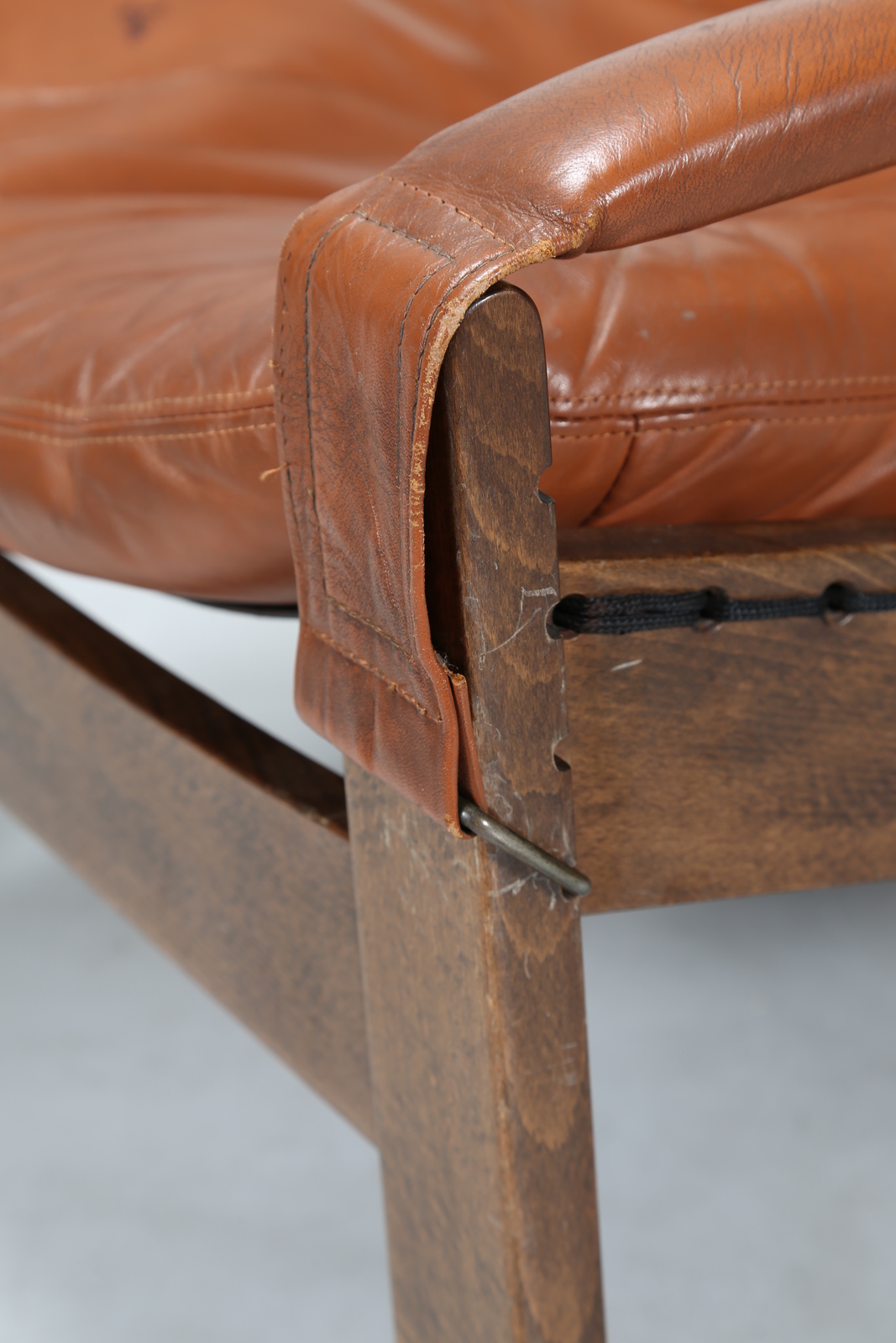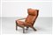 MANIFATTURA ITALIANA Poltrona relax in faggio e pelle, anni 60. -. Cm 67,00 x 96,00 x 83,00.