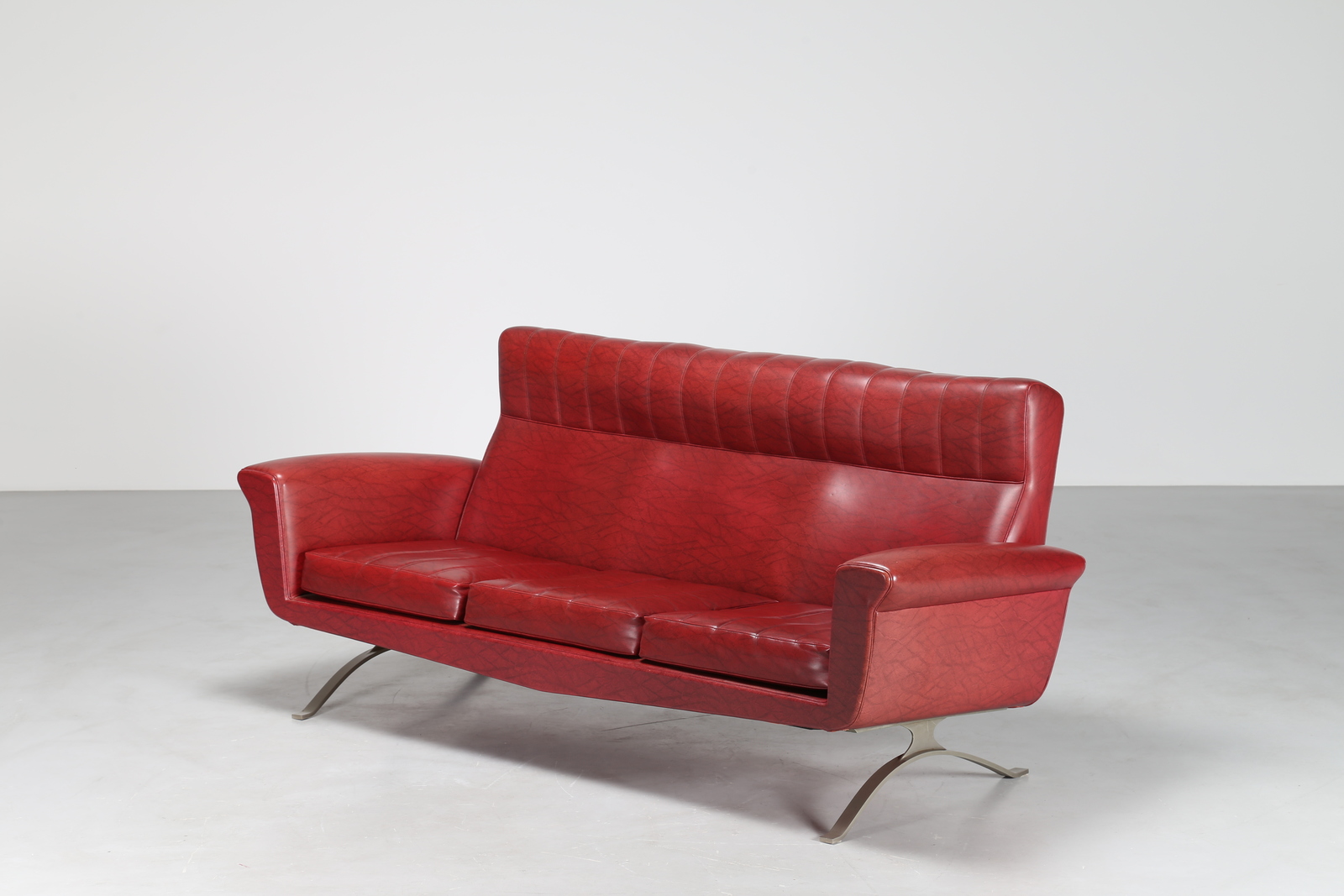 BOZZI AUGUSTO (1924 - 1982) Divano in acciaio cromato e sky, per Saporiti, anni 50. -. Cm 193,00 x 84,00 x 80,00.