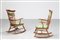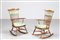 MANIFATTURA ITALIANA Coppia di dondoli in noce, rivestiti in seta verde, anni...