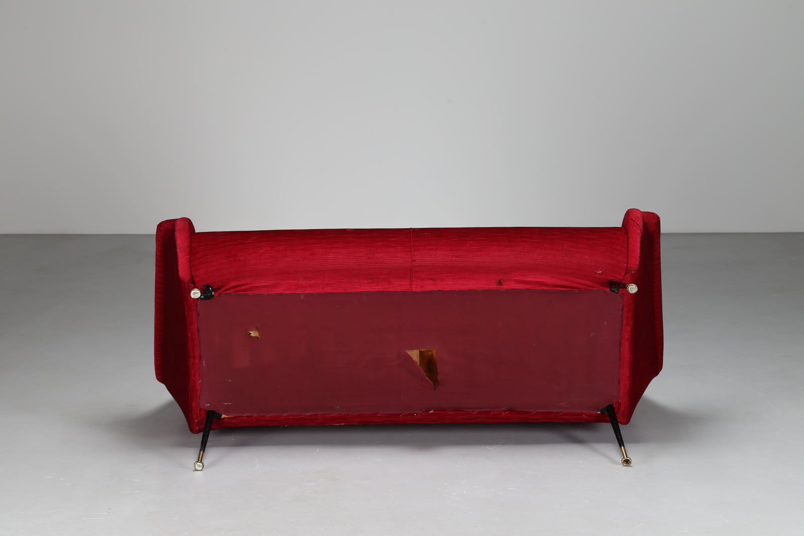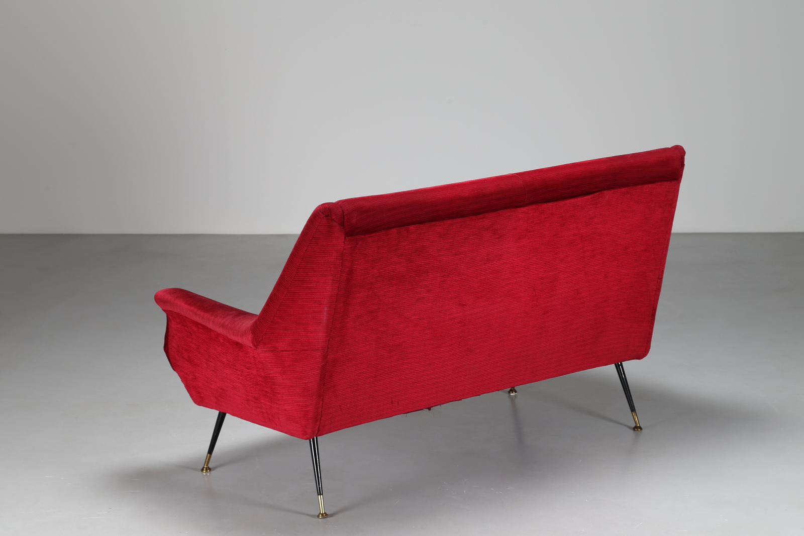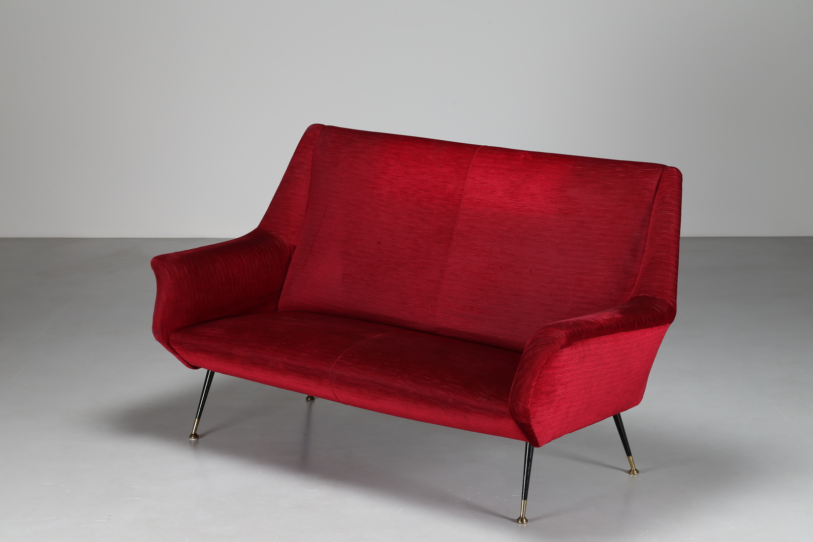 MANIFATTURA ITALIANA Divanetto due posti in tessuto e ottone laccato, anni 50. . Cm 161,00 x 91,00 x 75,00.