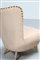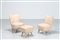 VERONESI GUGLIELMO Coppia di poltroncine e un pouf in sky bianco e legno, mod. Perla, produzione ISA anni 50. -. Cm 50,50 x 70,50 x 59,00. Misura pouf: 40x47x40