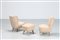 VERONESI GUGLIELMO Coppia di poltroncine e un pouf in sky bianco e legno,...