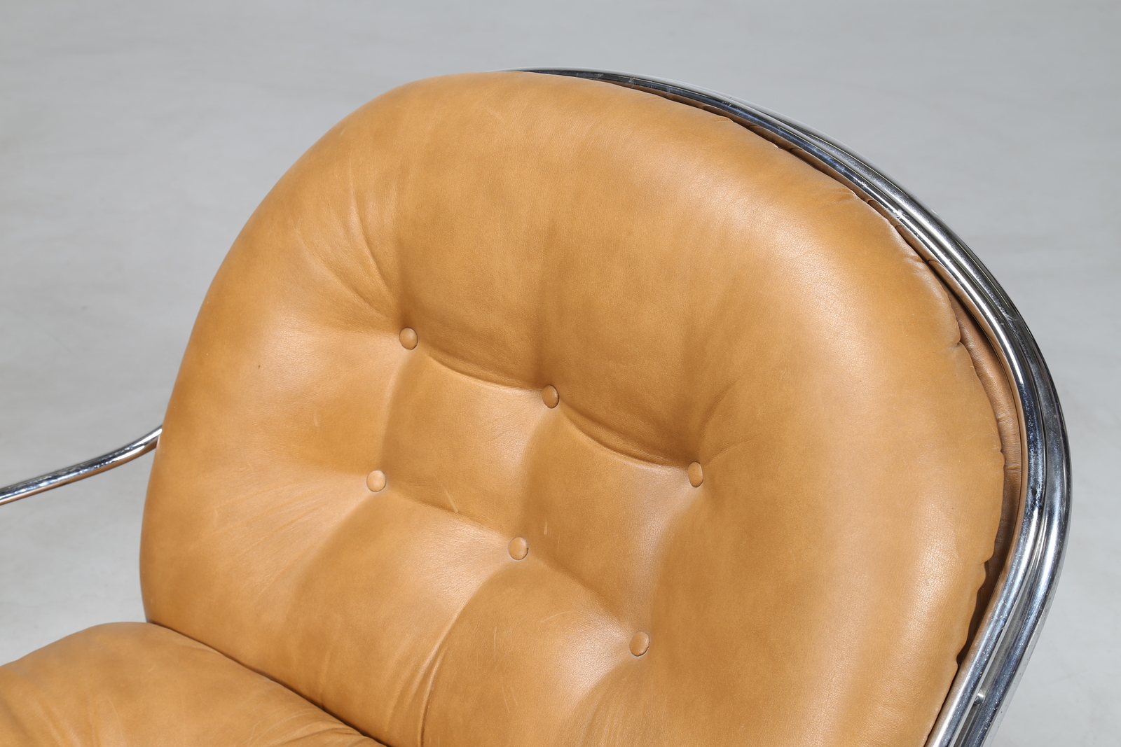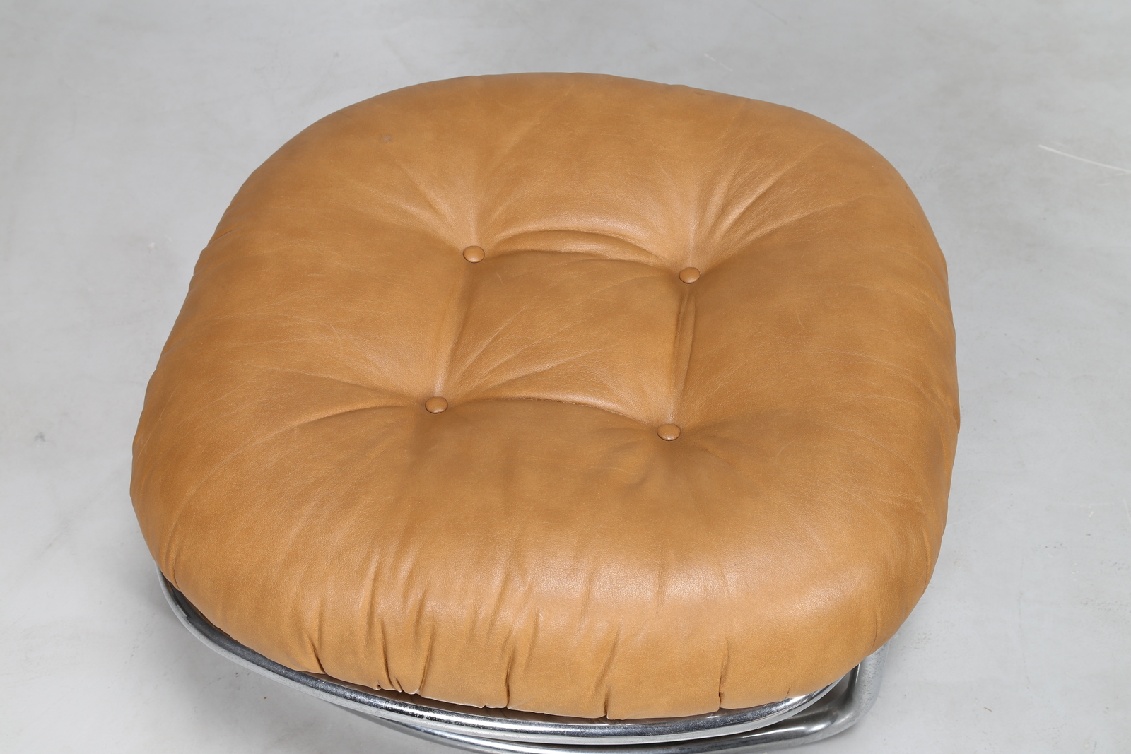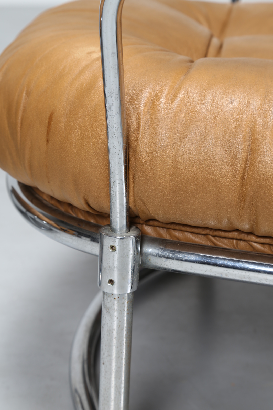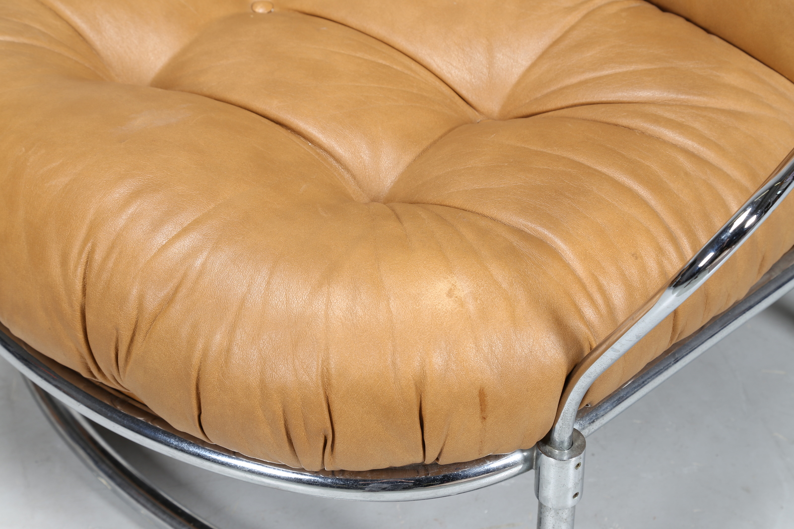 DE CARLI CARLO (1910 - 1999) Poltrona con pouf in tubolare cromato e cuscini in pelle, mod. 915, per Cinova, anni 60 . -. Cm 87,00 x 83,00 x 90,00. Misura pouf: 37x63x63