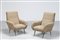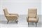 MANIFATTURA ITALIANA Coppia di poltrone in metallo laccato, ottone e tessuto...