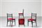 ULRICH GUGLIELMO Quattro sedie In legno laccato nero e tessuto, per Saffa,...