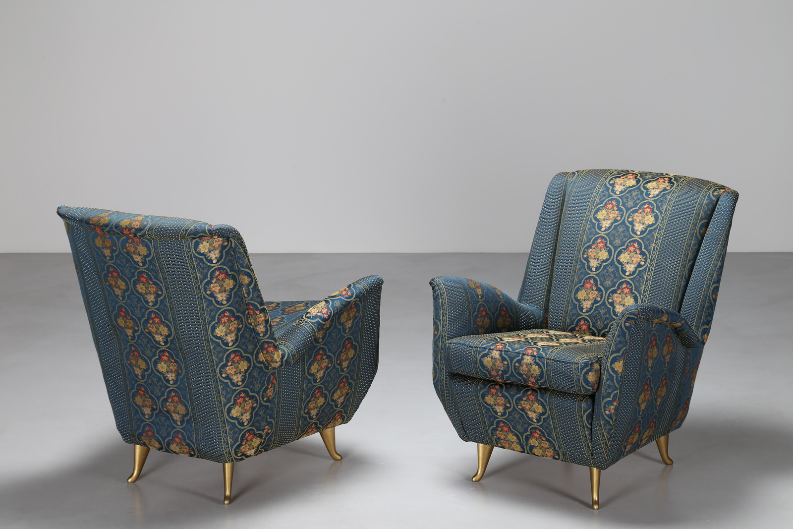 ISA BERGAMO Coppia poltrone in tessuto e piedini in ottone, anni 50. -. Cm 90,00 x 90,00 x 76,00.