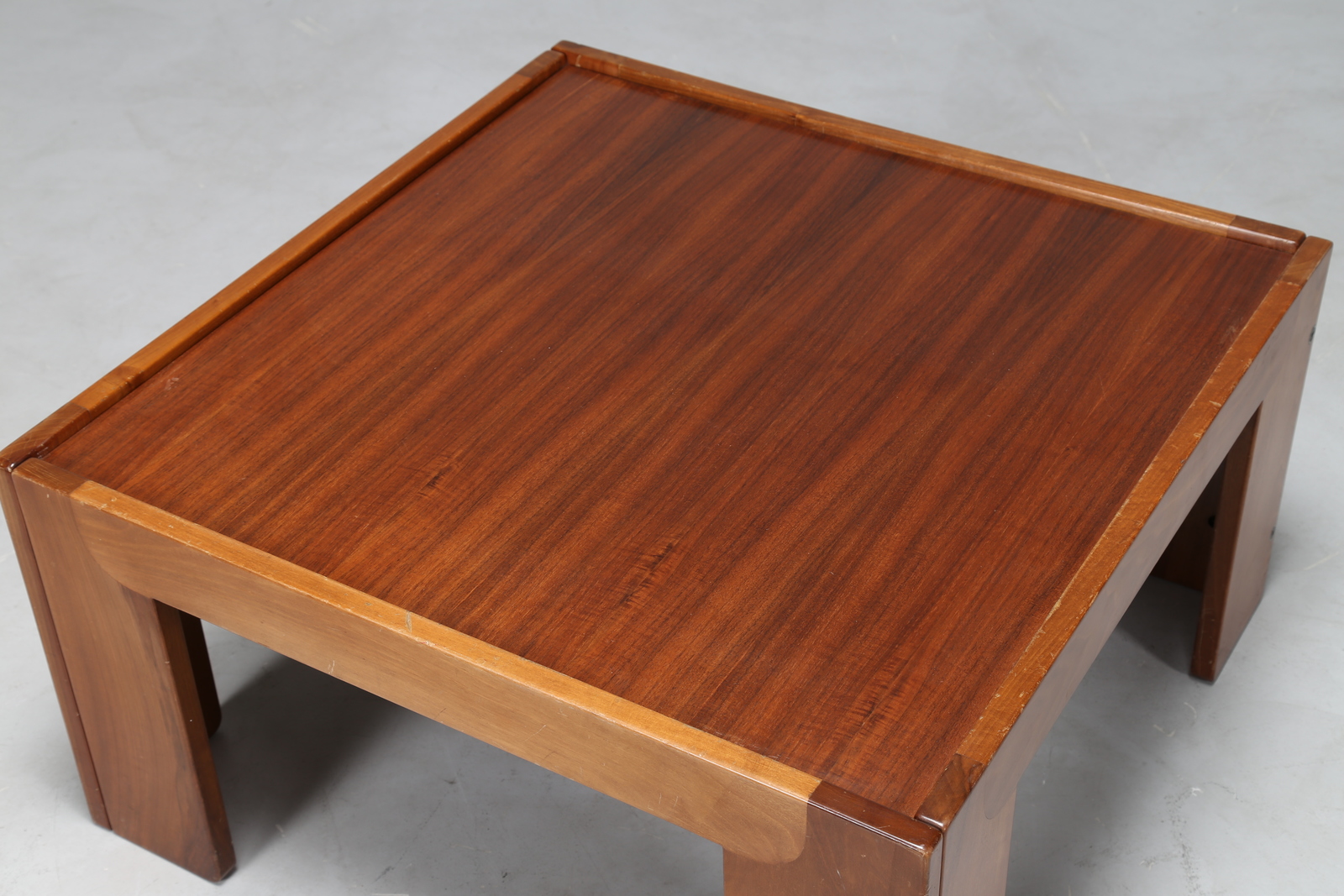 SCARPA TOBIA (n. 1935) Tavolino quadrato in palissandro, per Cassina, anni 70. Legno. Cm 75,00 x 38,50 x 75,00. Etichetta presente
