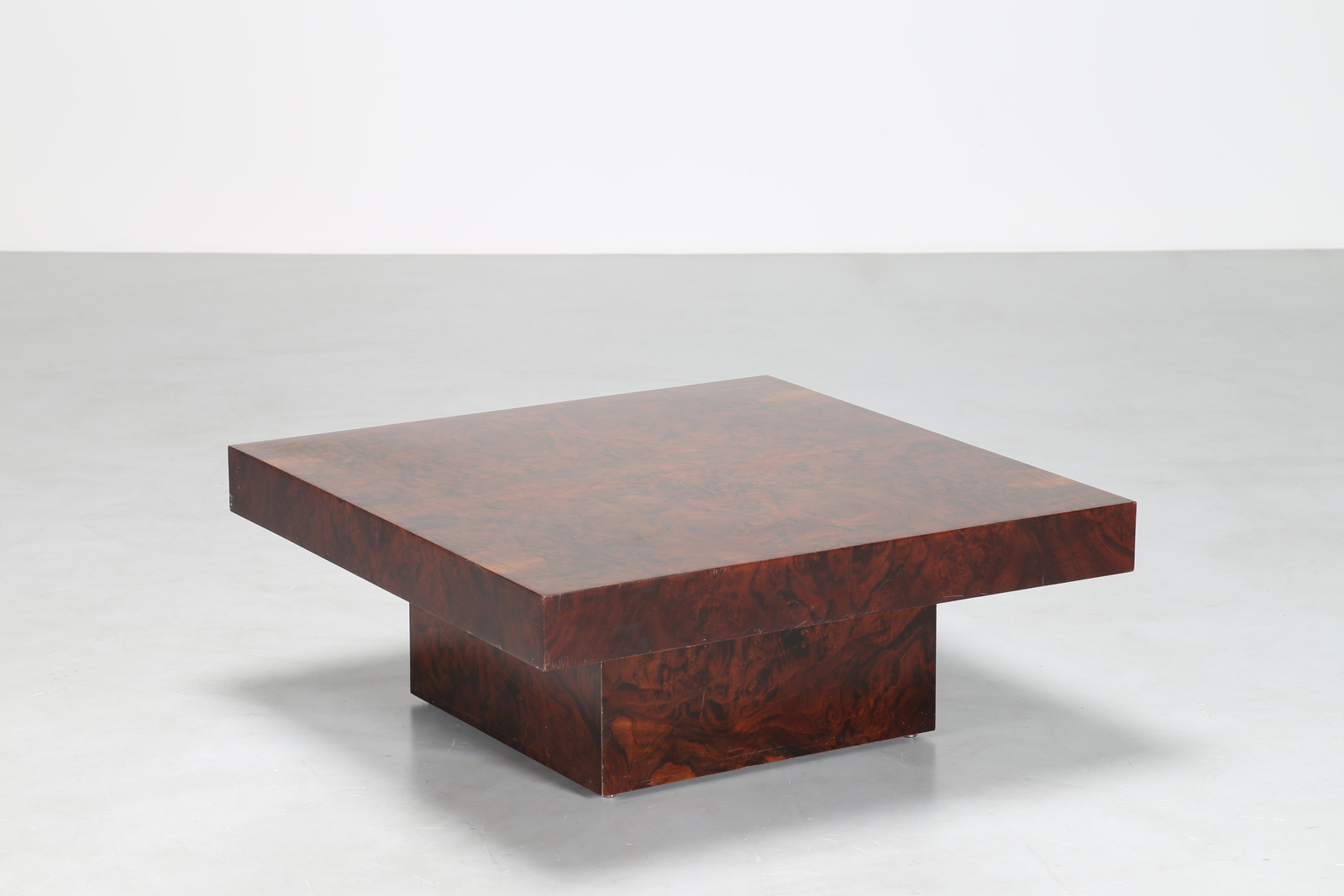RIZZO WILLY (1928 - 2013) Attrib. Tavolino da caffè in radica di legno, anni 70. -. Cm 85,00 x 33,00 x 85,00.
