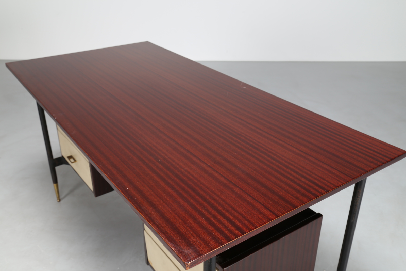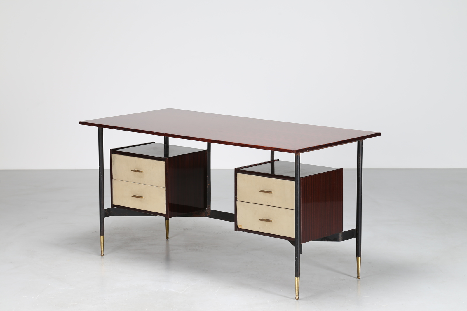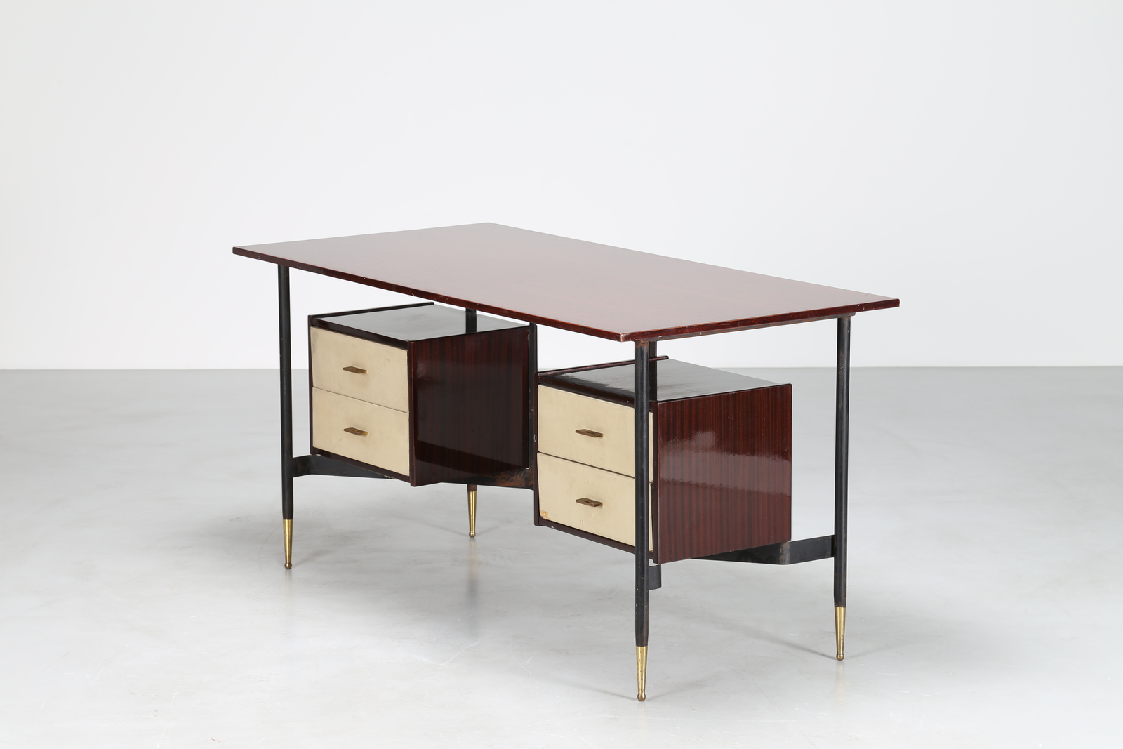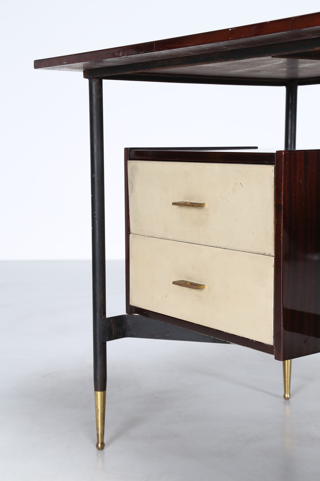 MANIFATTURA ITALIANA Scrivania in metallo laccato e palissandro, anni 60. -....