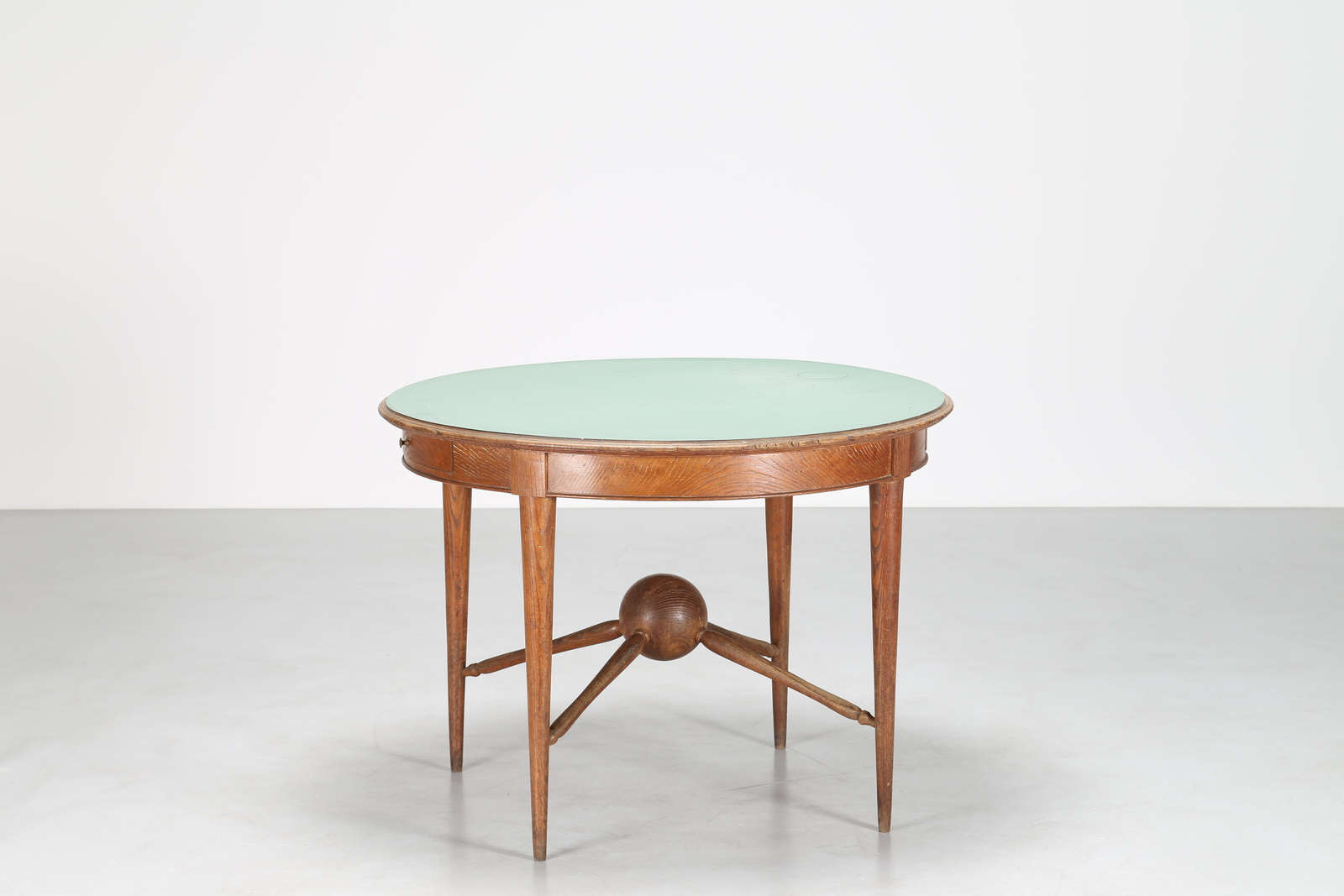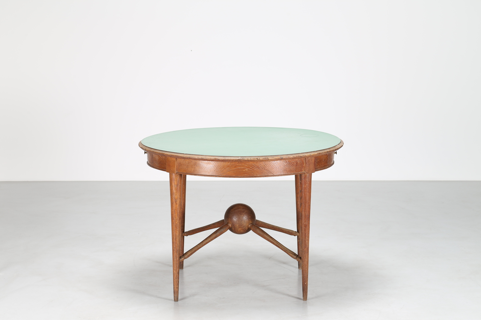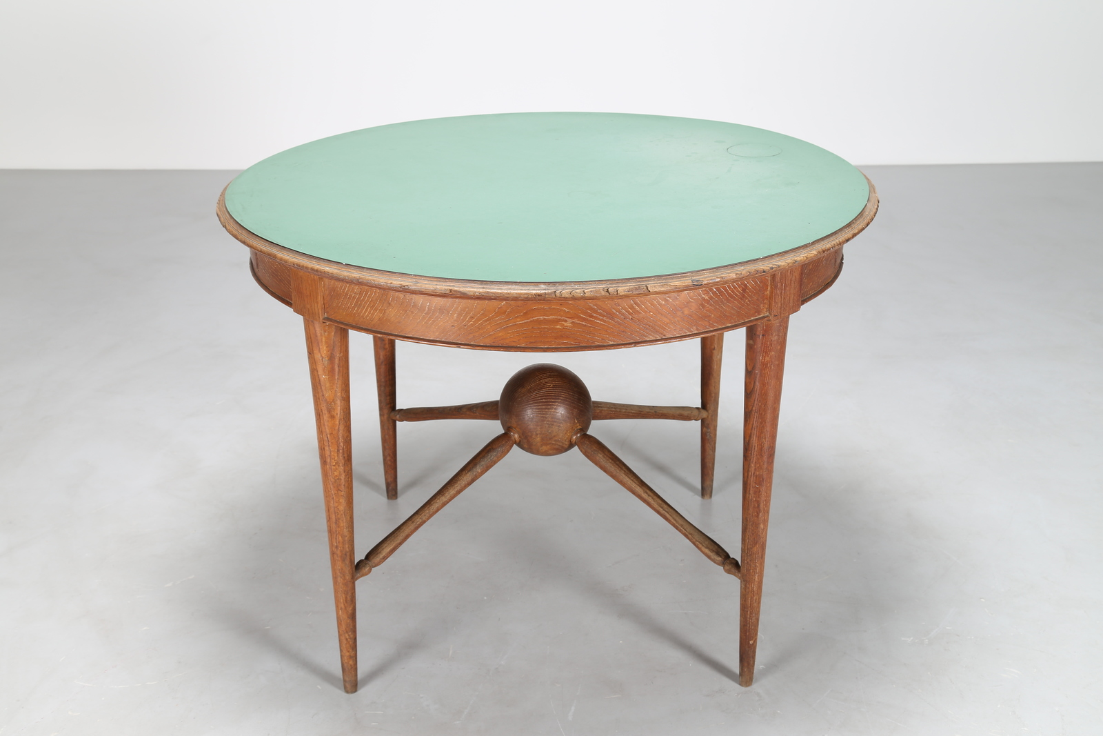 Lot 384 | MANIFATTURA ITALIANA Tavolo rotondo in rovere con piano in formica, anni 50....