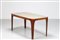 MANIFATTURA ITALIANA Tavolo in noce nazionale con piano in vetro, anni 50°....