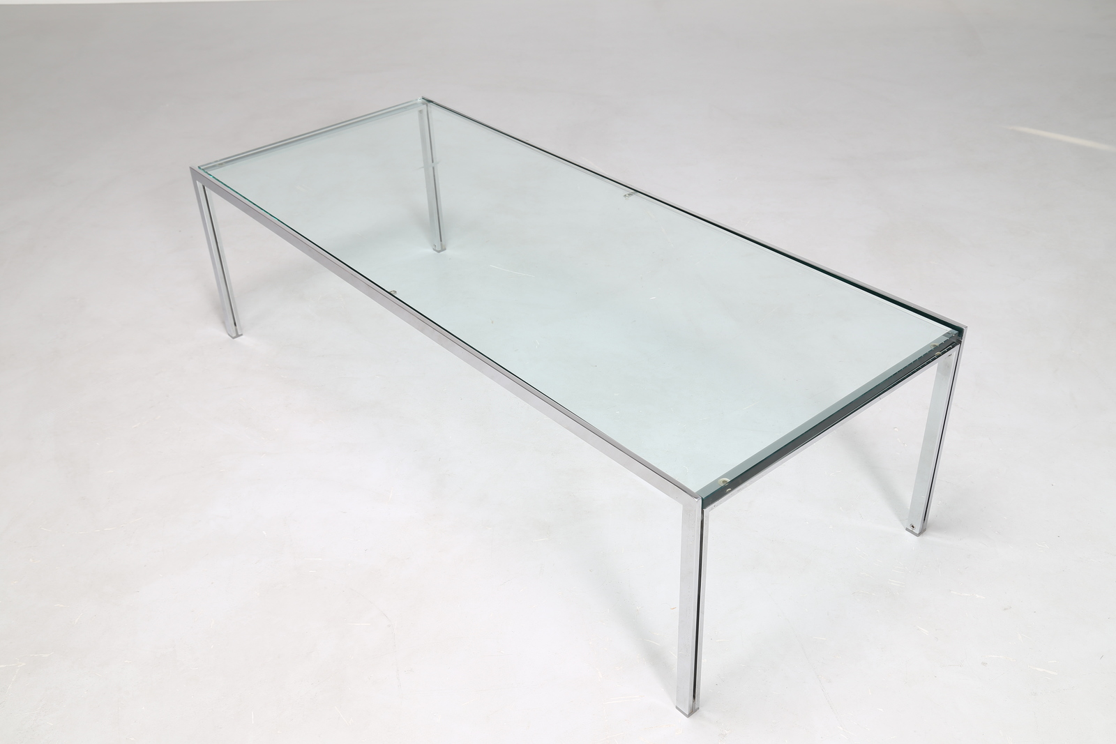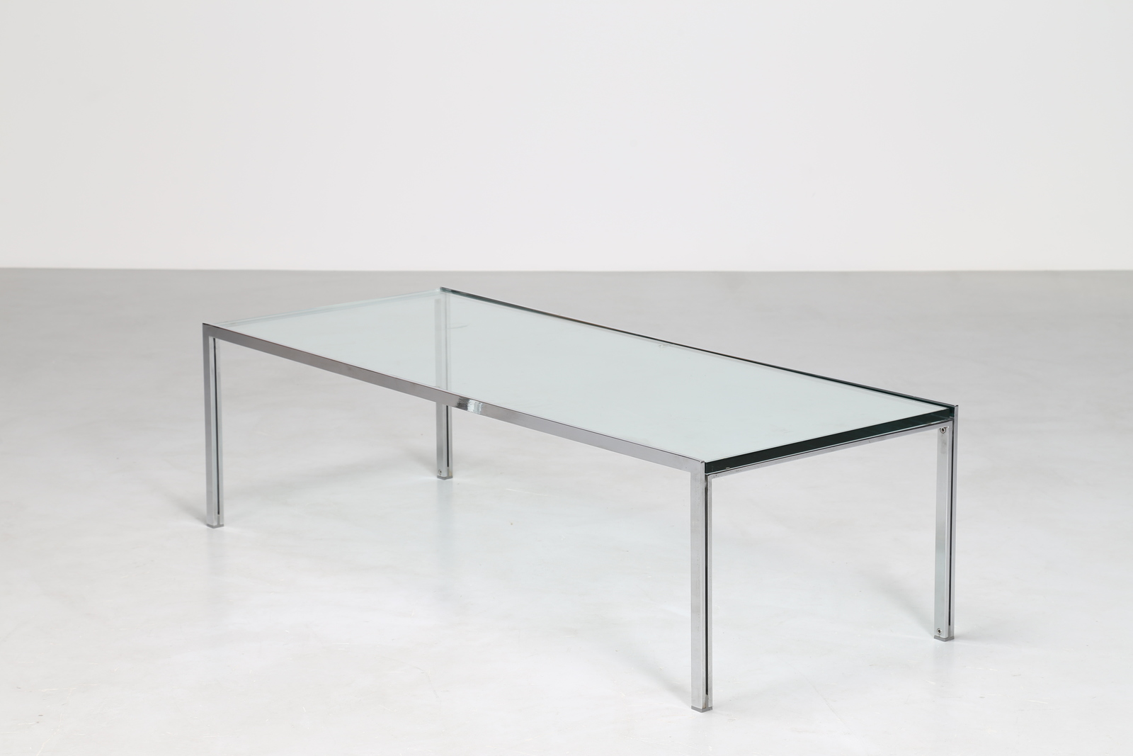 Lot 391 | LITTEL ROSS Tavolino da caffè in acciaio cromato con piano in cristallo, per...