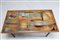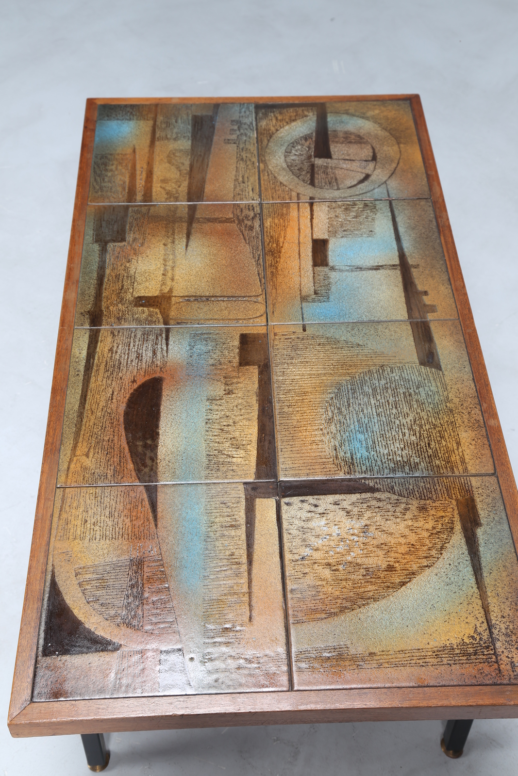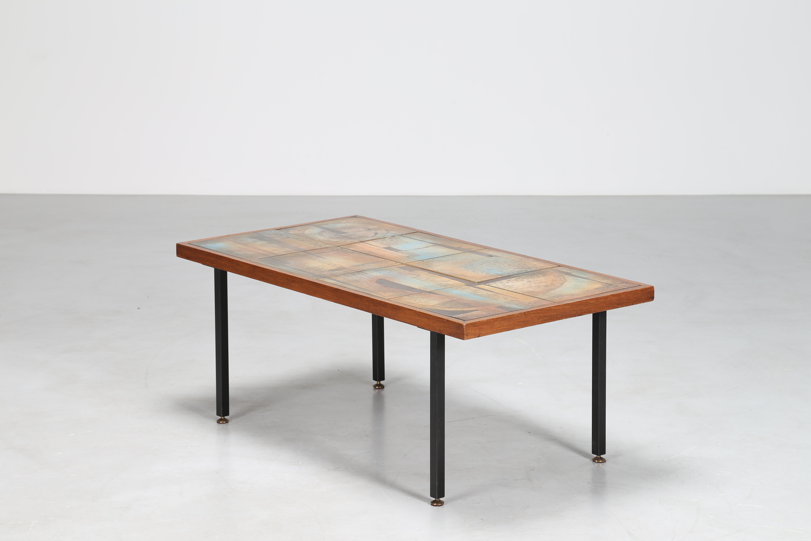 MANIFATTURA ITALIANA Tavolino da caffè in metallo laccato, vetro, ottone e ceramica. -. Cm 108,00 x 44,00 x 56,00.