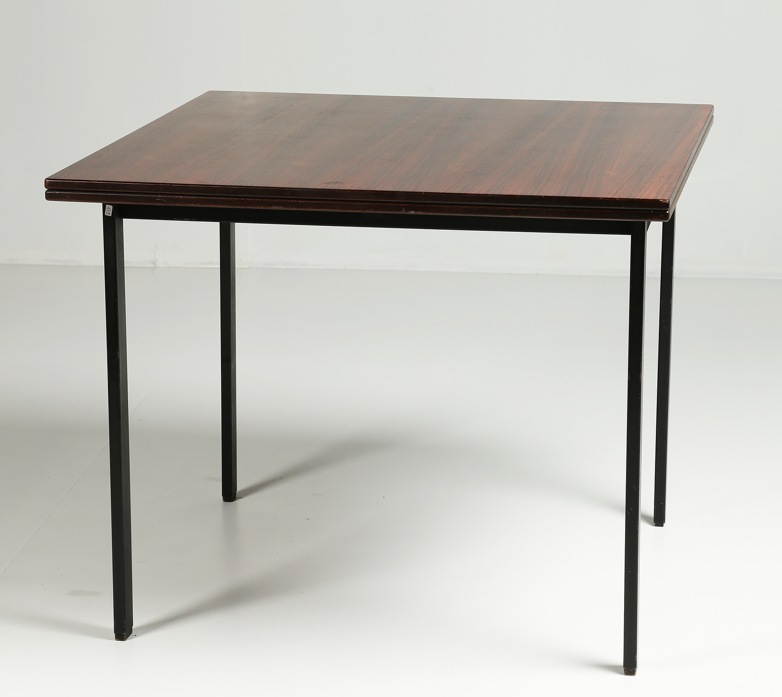 BORSANI OSVALDO (1911 - 1985) Tavolo allungaile in metallo con piano in palissandro, mod. T64, per Tecno anni 70. Legno e metallo. Cm 90,00 x 76,00 x 90,00. Lunghezza massima 180 cm.