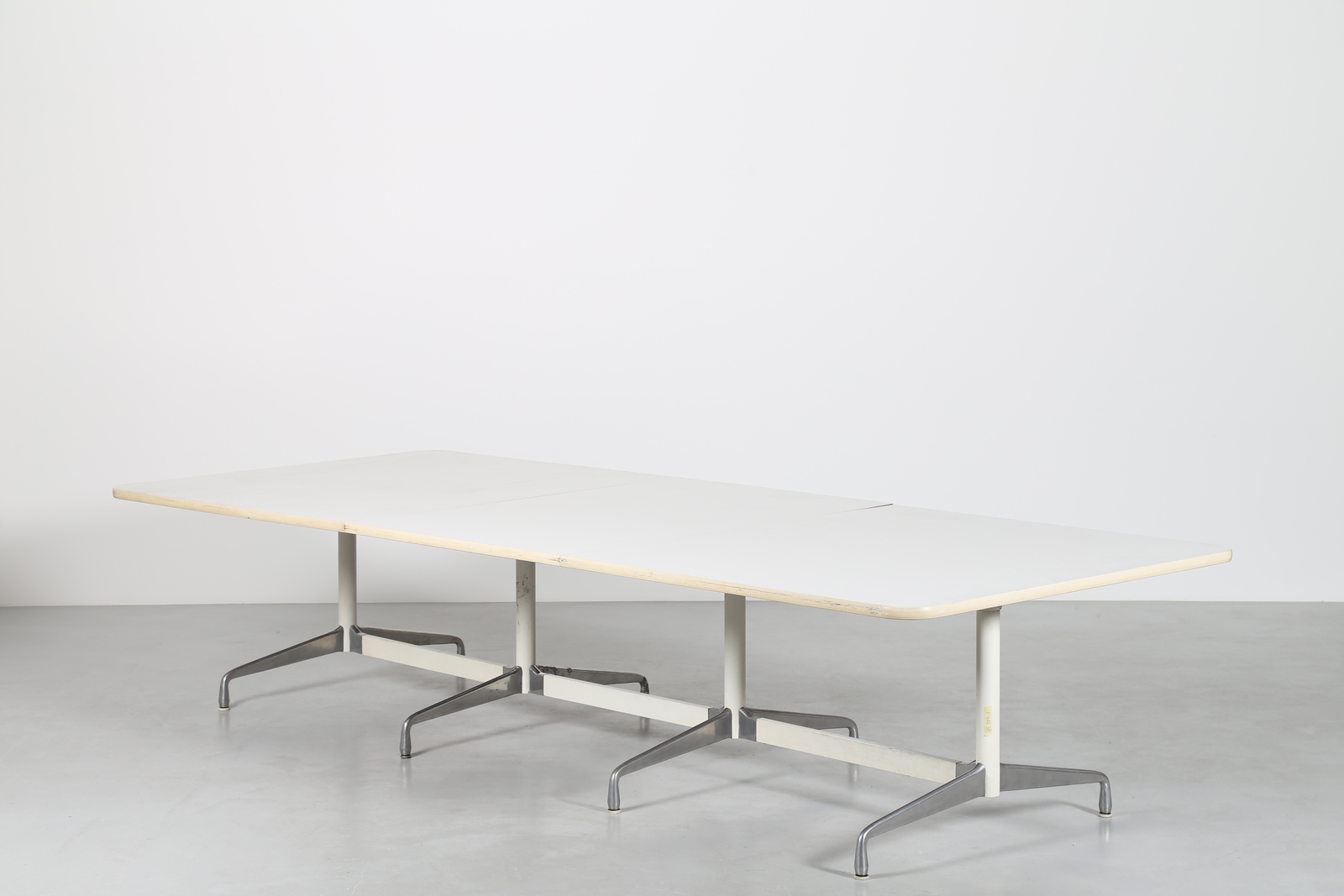 CHARLES & RAY EAMES (1907 - 1978) Grande tavolo riunioni in metallo cromato e legno PVC, per Herman Miller, anni 70. Legno, metallo. Cm 333,00 x 73,50 x 138,00.