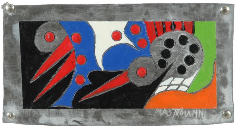 UMBERTO MASTROIANNI (1910-1998) Composizione 1955 olio su lamina a sbalzo cm 13.5x20 firmato in basso a destra