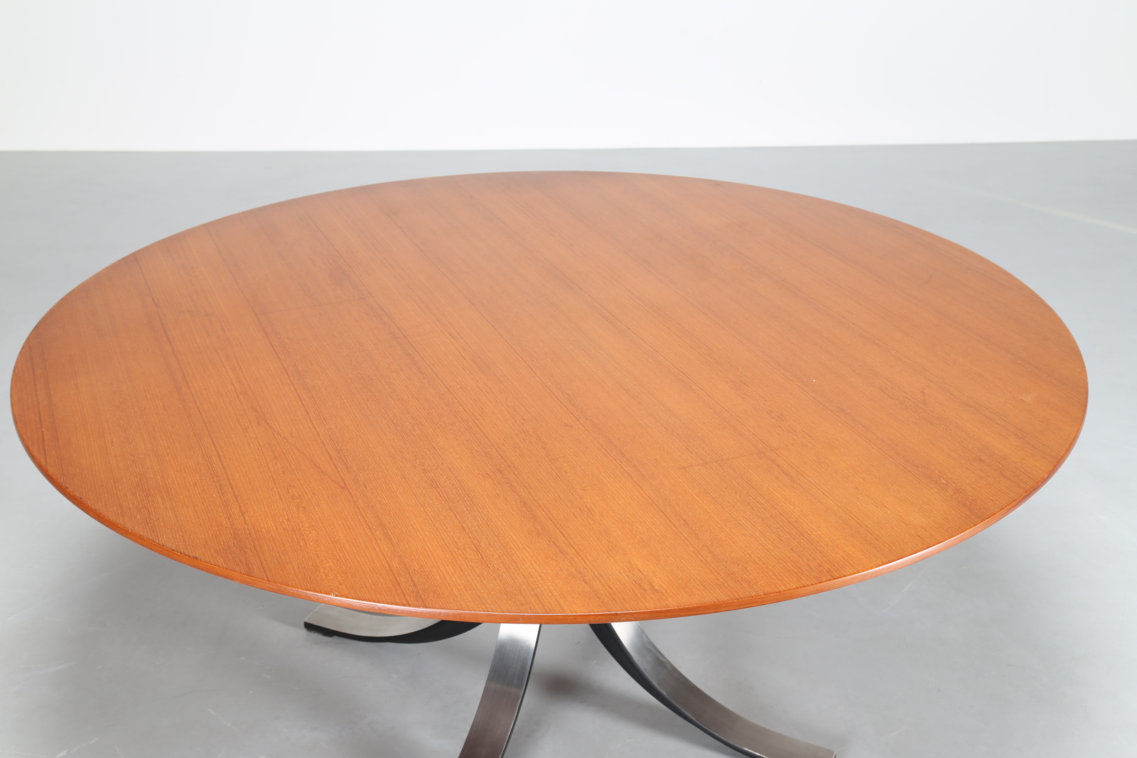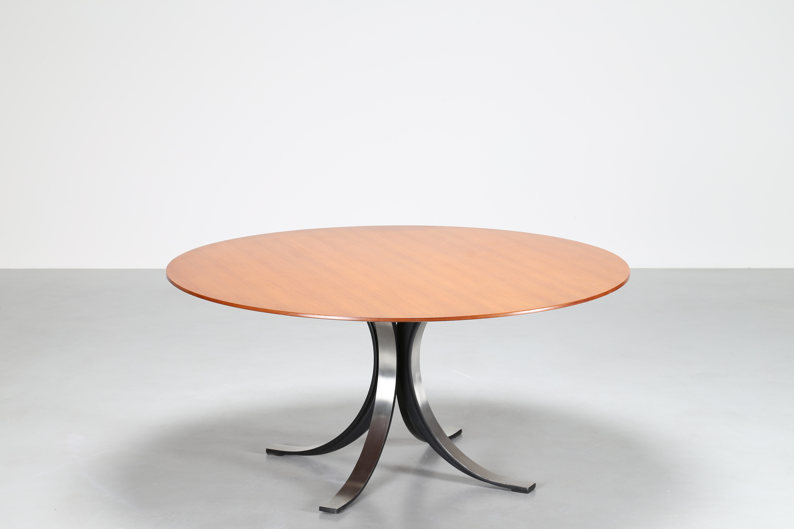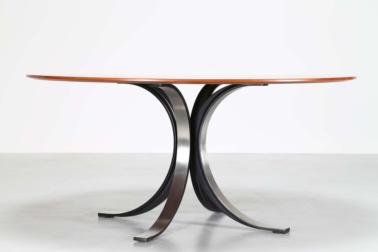 BORSANI OSVALDO (1911 - 1985) In collaborazione con Eugenio Gerli, Tavolo rotondo con base in fusione di alluminio e piano in legno, mod. t69 per Tecno, anni 60 . . Cm 140,00 x 60,00.