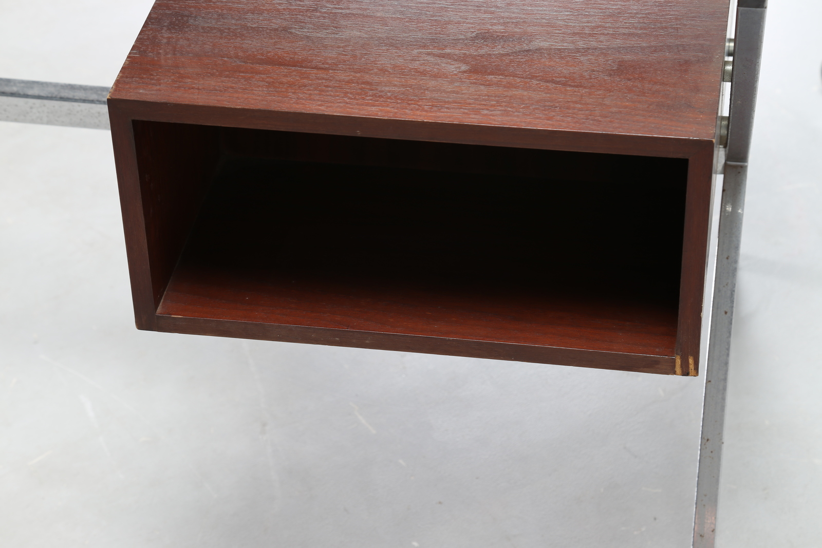 ALBINI FRANCO (1905 - 1977) Scrittoio in tubolare d’acciaio quadrato cromato contenitore in palissandro e piano in cristallo trasparente, per Knoll International, anni 70 . -. Cm 121,00 x 70,00 x 66,00.