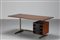 PONTI GIO' (1891 - 1979) Scrivania in metallo e palissandro disegnata per il grattacielo Pirelli Prod. Rima, 1960 Marchio Inciso Rima. Bib. Edilizia Moderna, n. 71, dicembre 1960, numero speciale sul centro Pirelli, inserzione pubblicitaria Rima. Ponti, Fornaroli, Rosselli, Valtolina, Dell’Orto, Gli interni, in “Edilizia Moderna”, n. 71, dicembre 1960, pag. 84, Gastone Rinaldi designer alla Rima a cura di Giuseppe e Jacopo Drago Pag. 226. Expertice a cura di Salvatore Licitra Archives Gio Ponti Milano . Legno di noce e metallo. Cm 170,00 x 75,00 x 80,00. anni 60.