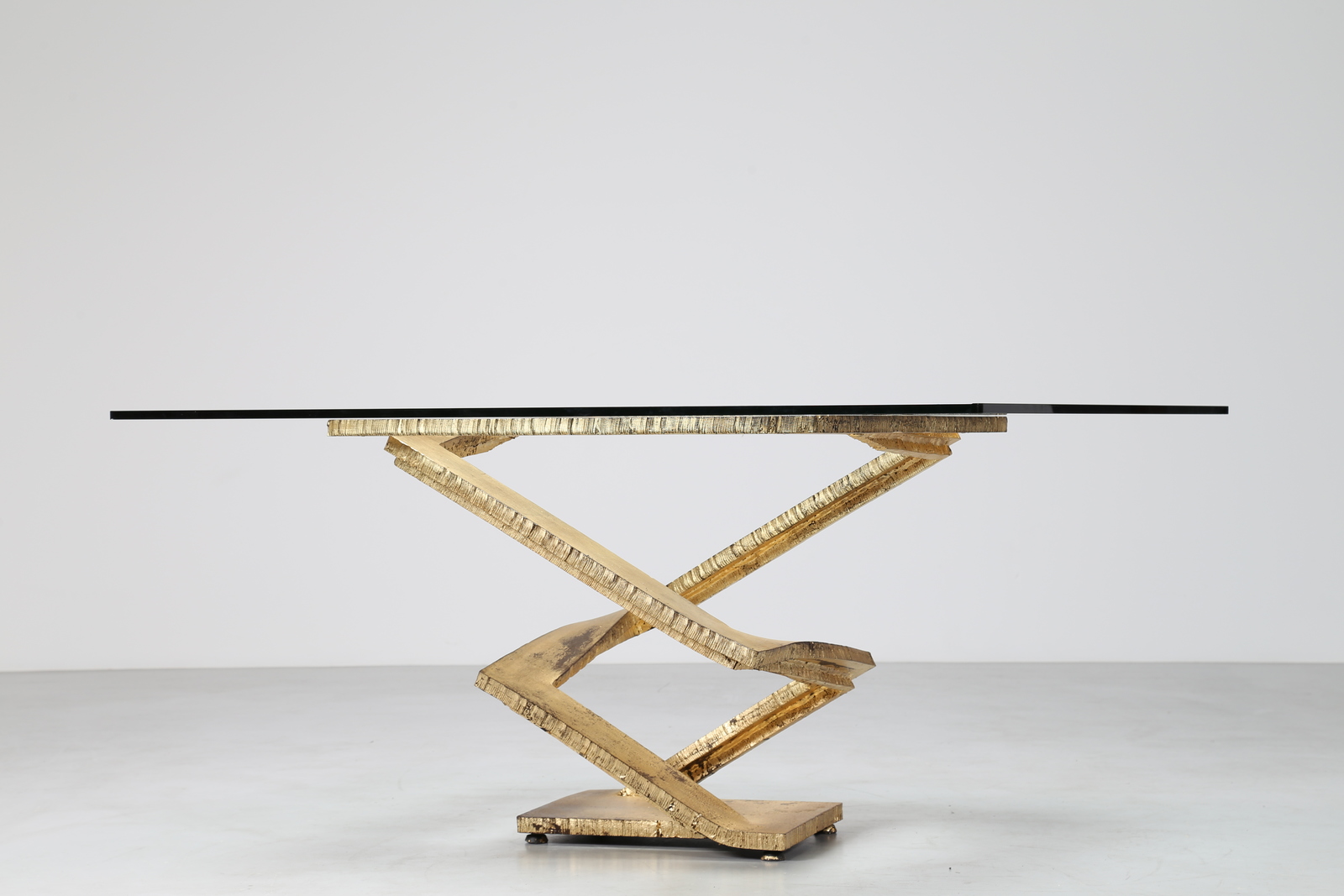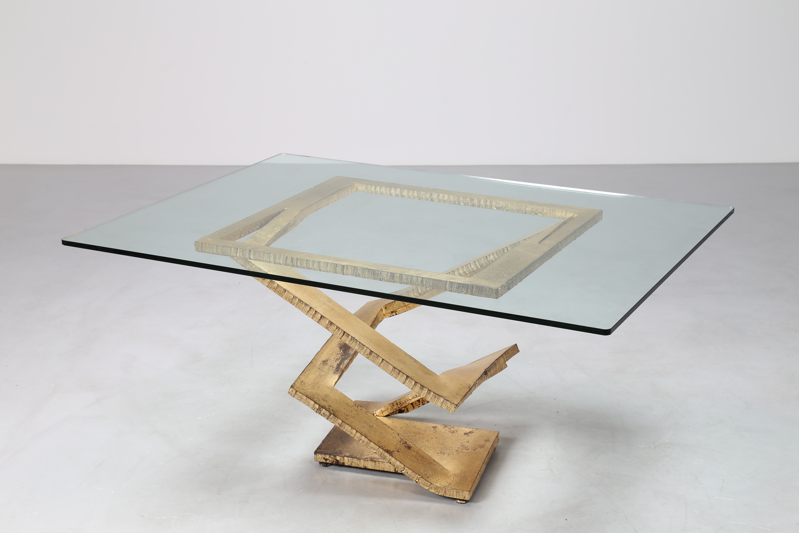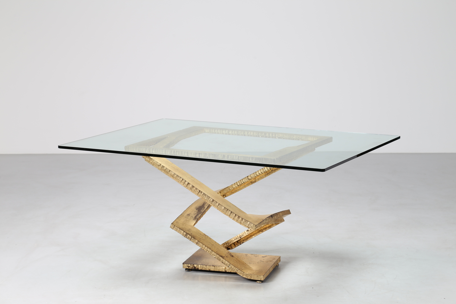 BARILONE MAURICE Tavolo scultura costituito da una lastra in ferro tagliata...