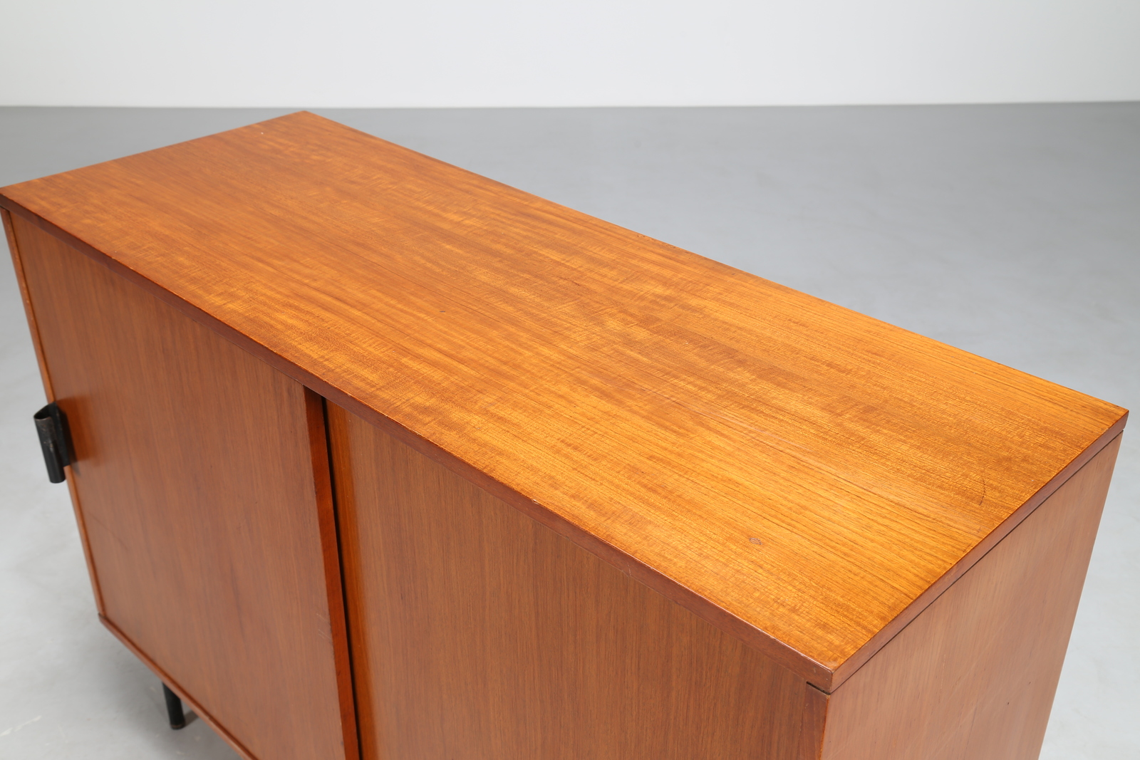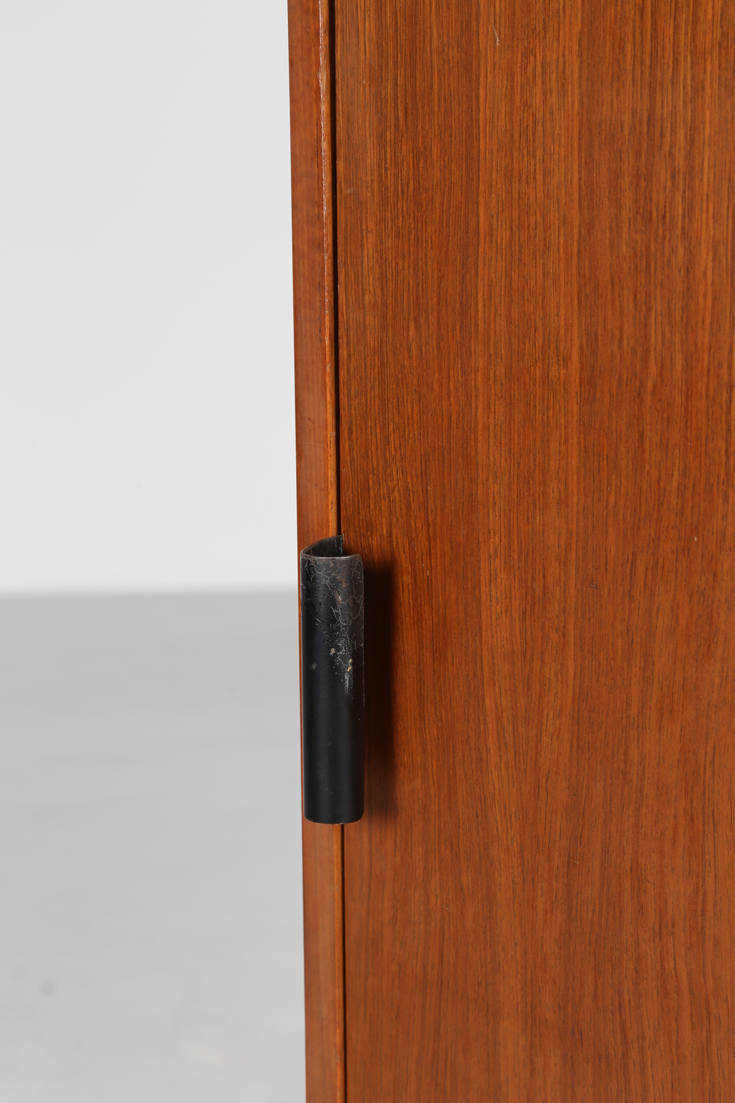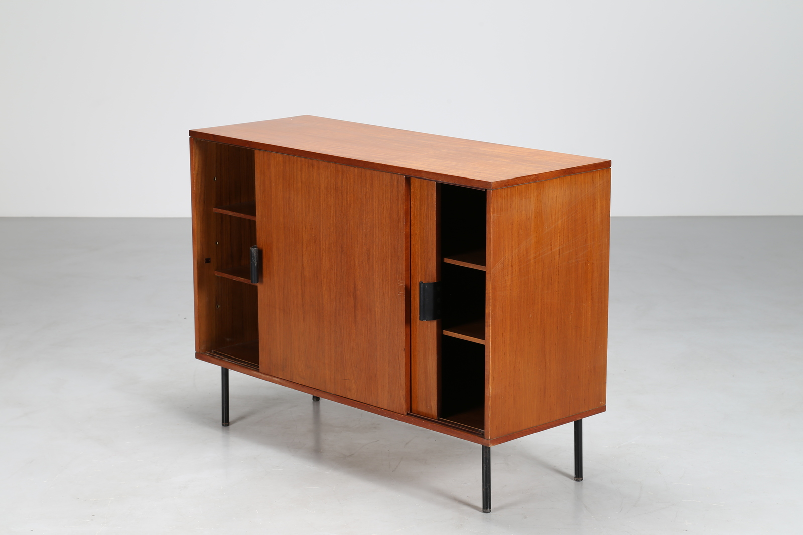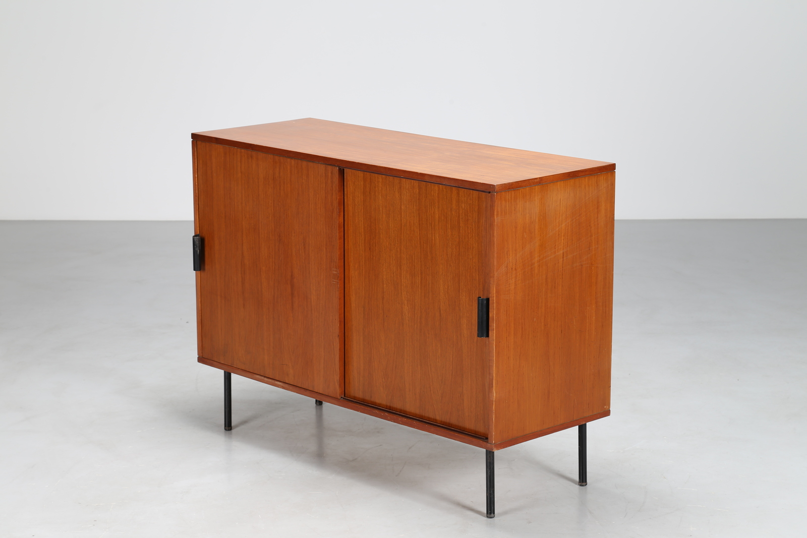 FIORI LEONARDO Mobile ad ante scorrevoli in legno di teak e tondino di ferro laccato, produzione Isa Ponte S. Pietro Bergamo, anni 60. -. Cm 120,00 x 88,50 x 46,00.