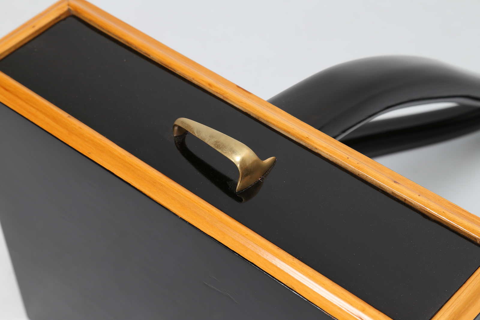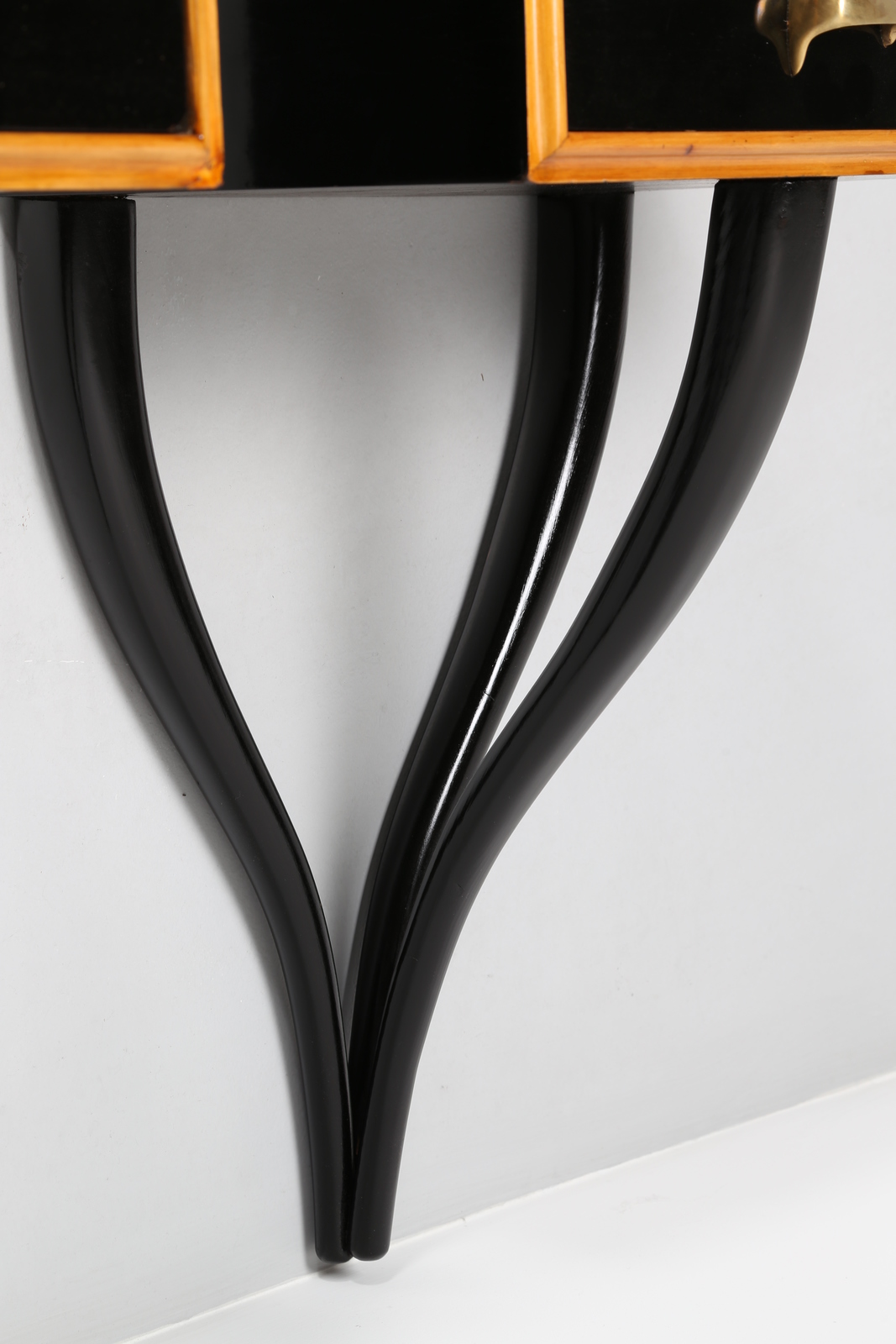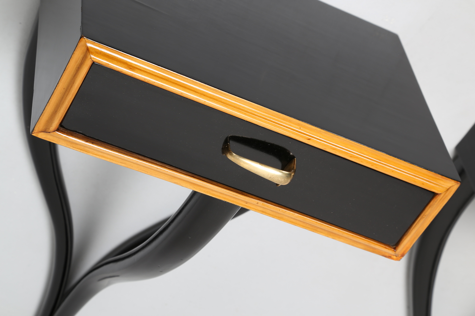 MANIFATTURA ITALIANA Coppia di comodini in legno ebanizzato nero e maniglie...