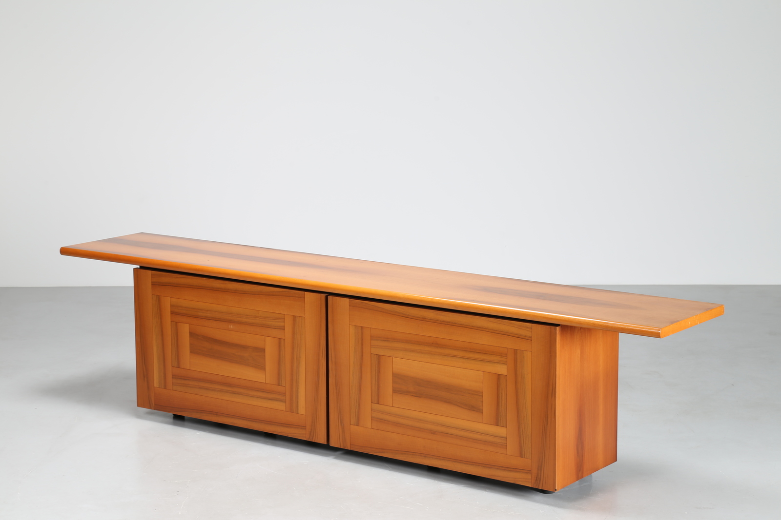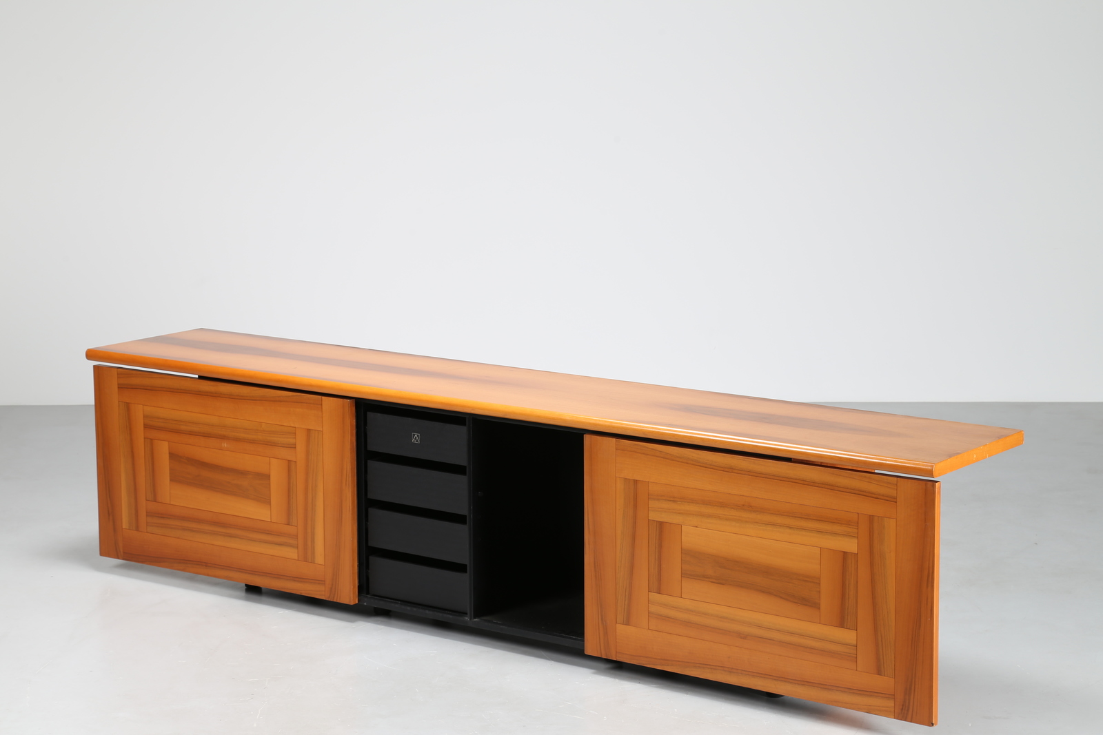 STOPPINO GIOTTO (n. 1926) Credenza in noce tanganika, mod. Sheraton per Acerbis, anni 70. . Cm 280,00 x 70,00 x 49,00. Etichetta presente