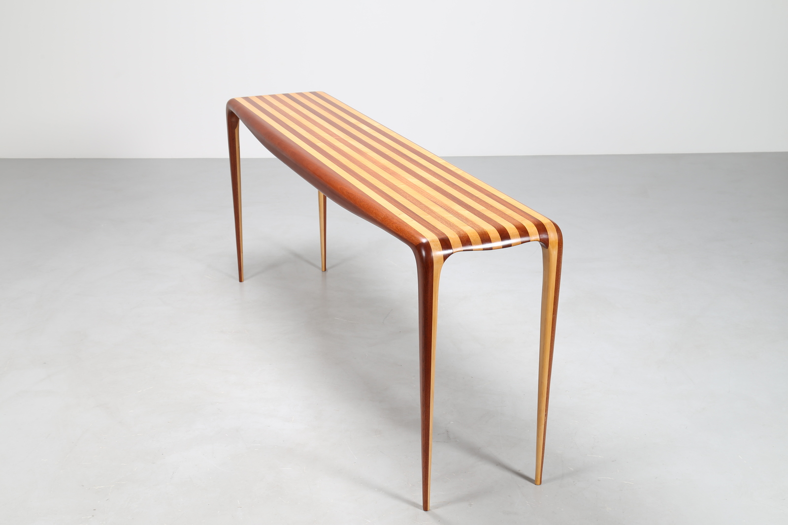 MANIFATTURA ITALIANA Consolle bicolore in mogano e acero, anni 80 . -. Cm 201,00 x 86,00 x 50,00.