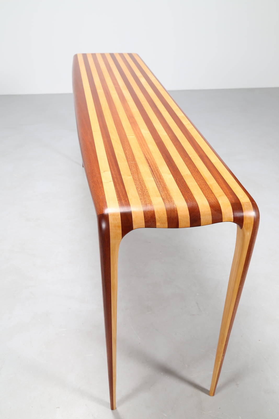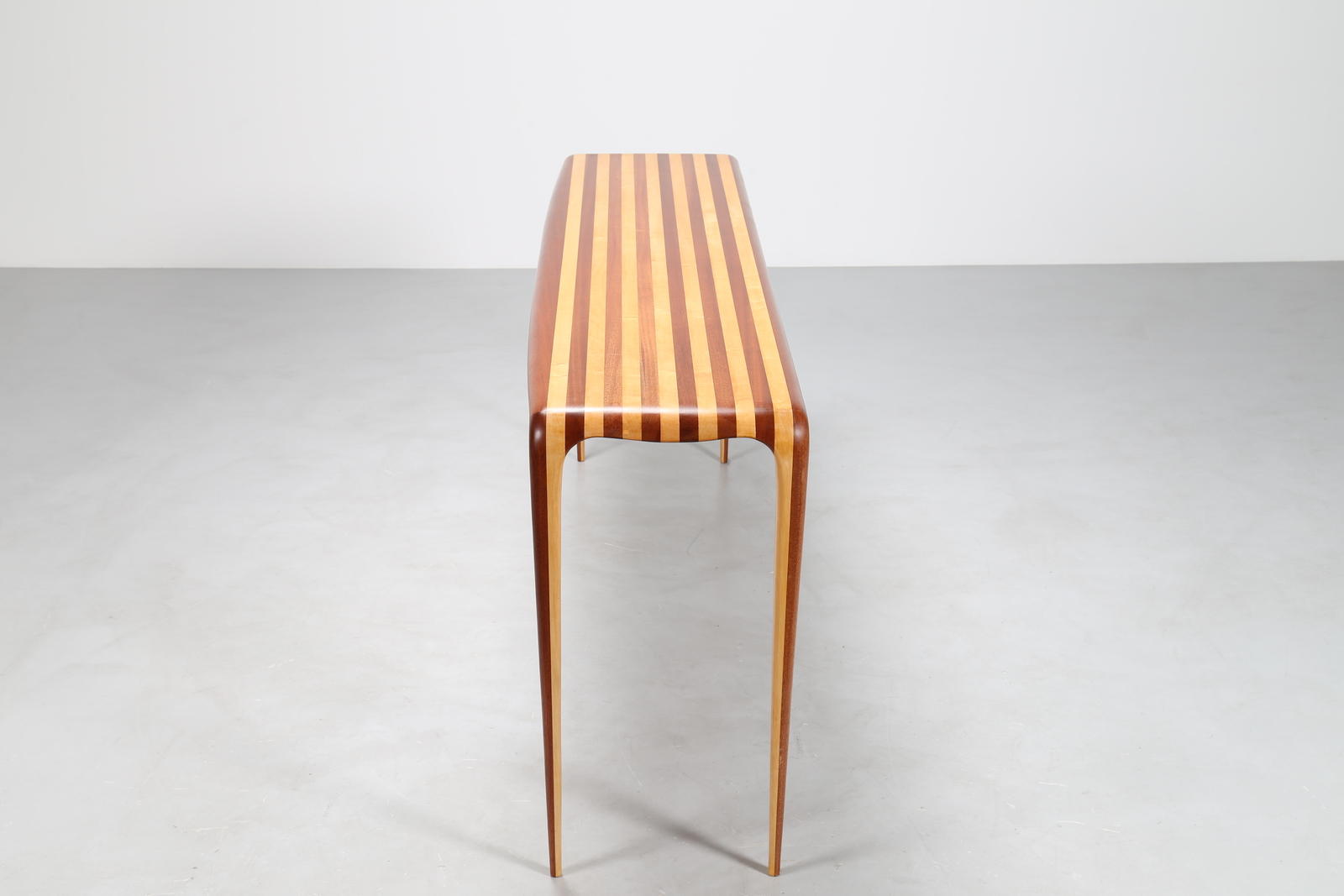 MANIFATTURA ITALIANA Consolle bicolore in mogano e acero, anni 80. -. Cm 201,00 x 86,00 x 50,00.