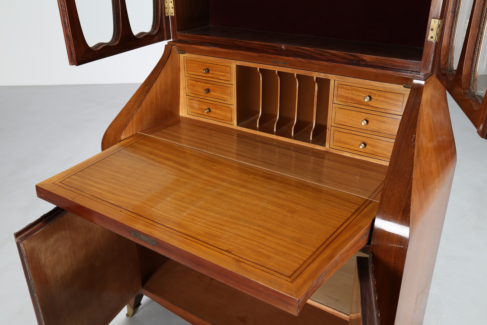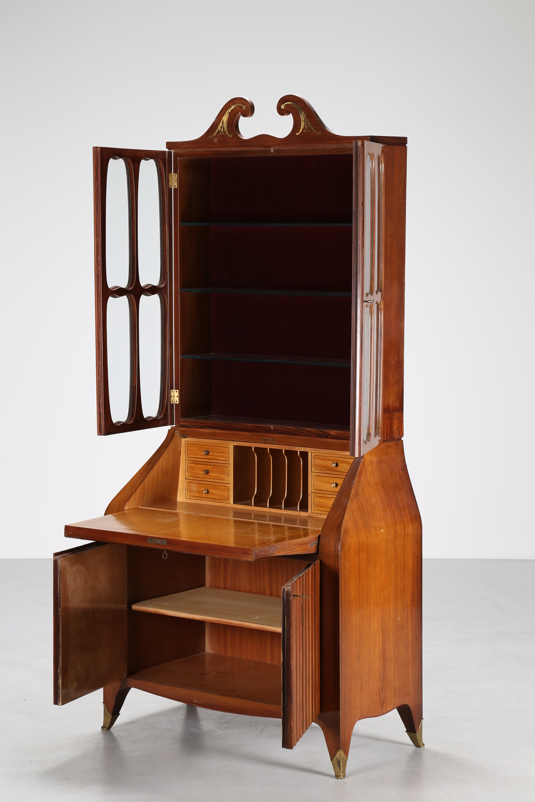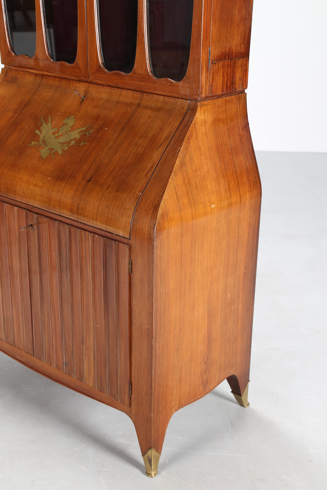 BUFFA PAOLO (1903 - 1970) Trumeau in mogano con fregio di Giovanni Gariboldi e dettagli in ottone, produzione, Fratelli Lietti, anni 40 . -. Cm 105,00 x 225,00 x 51,00.
