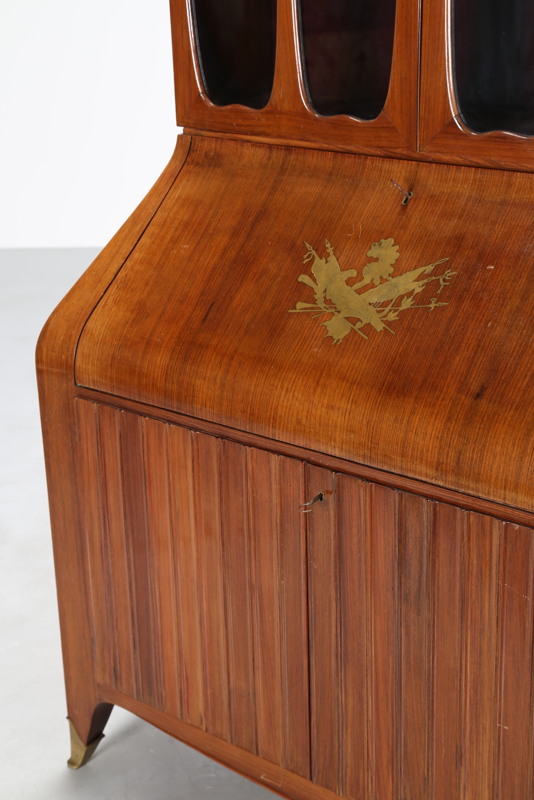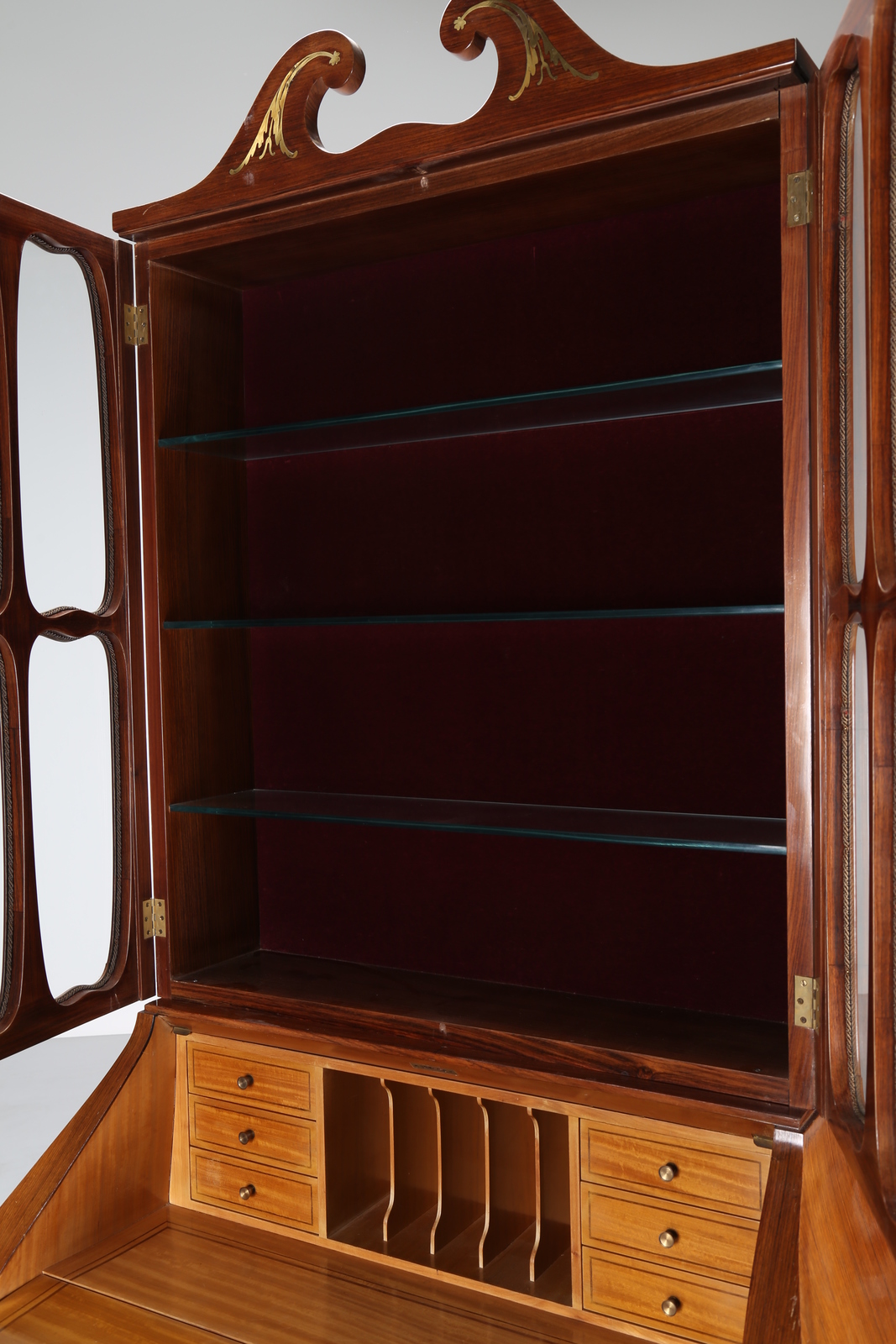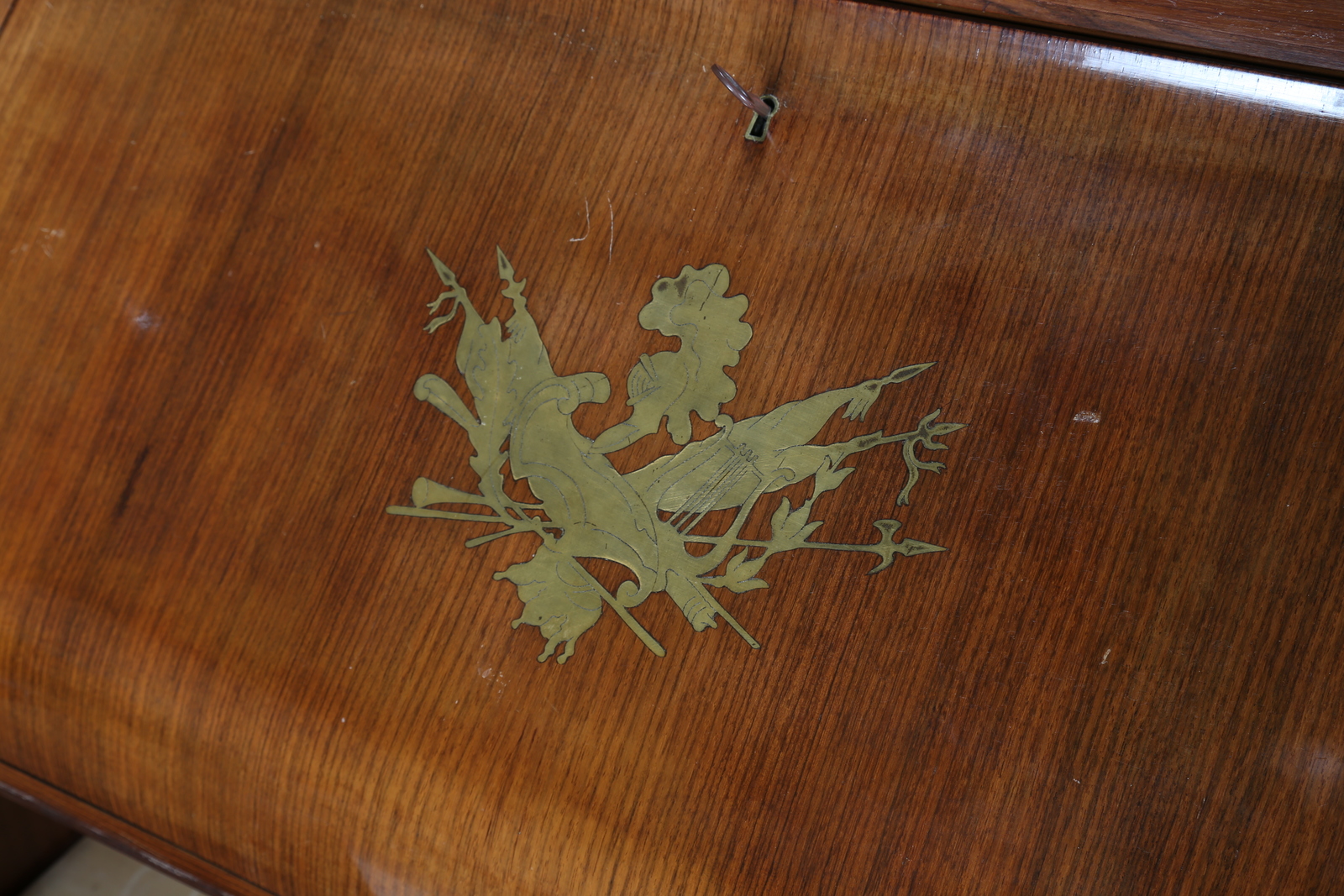 BUFFA PAOLO (1903 - 1970) Trumeau in mogano con fregio di Giovanni Gariboldi e dettagli in ottone, produzione, Fratelli Lietti, anni 40 . -. Cm 105,00 x 225,00 x 51,00.