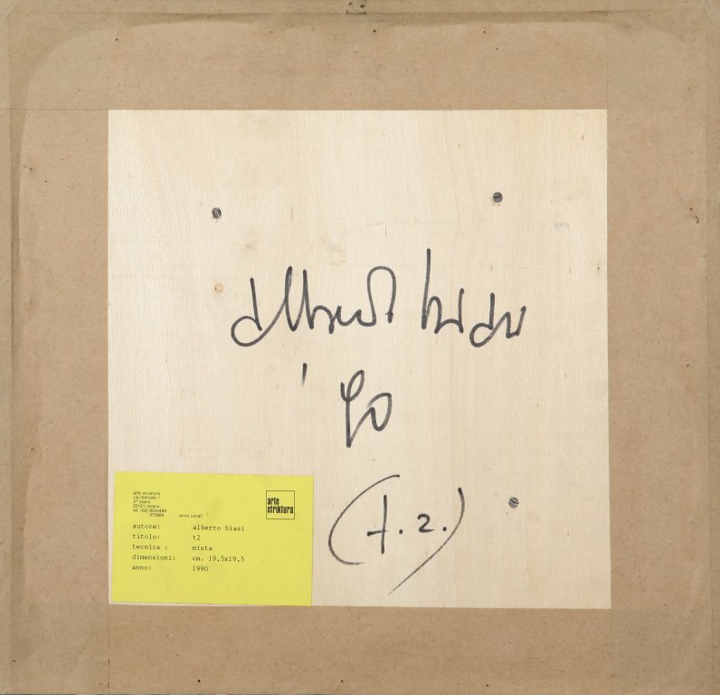 ALBERTO BIASI (1937-) T2 1990pittura e rilievi su tavola cm 20x20 firmato,...