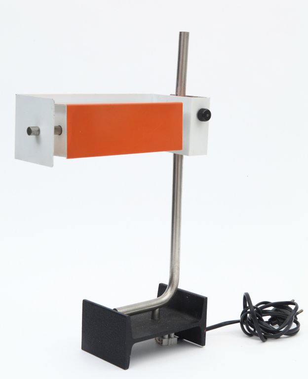 UNA LAMPADA DA TAVOLO, anni "60. Ghisa verniciata, acciaio cromato, lamierino...
