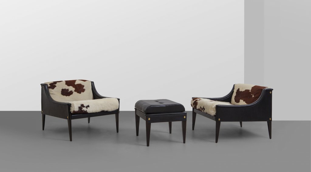 GIO PONTI Due poltrone "Dezza" e un poggiapiedi per POLTRONA FRAU, 1965....