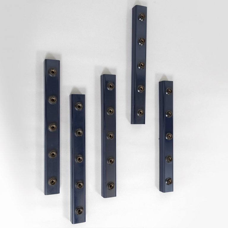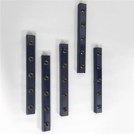 GINO SARFATTI Cinque lampade a parete "50" per ARTELUCE, 1968. Lamiera di...