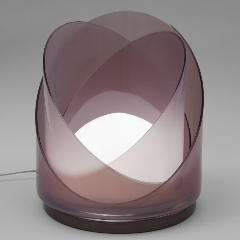MAZZEGA Una lampada da tavolo, anni '70. Metallo verniciato, vetro soffiato....