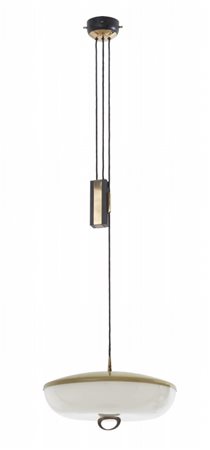 STILNOVO Una lampada a sospensione a saliscendi "1177" anni '60. Alluminio...