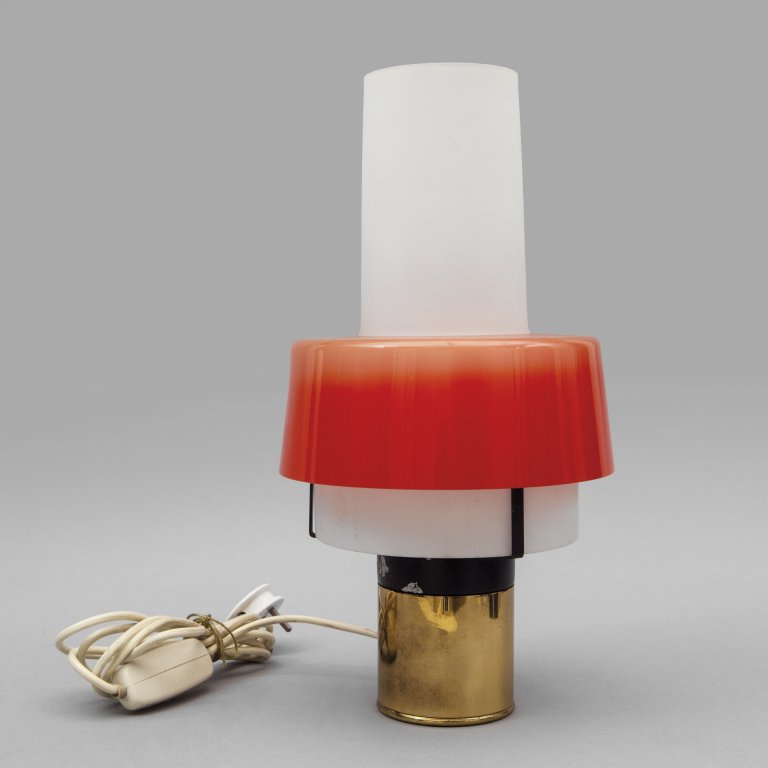 Brass, lacquered aluminum, frosted "triplex Opal" glass, and perspex,